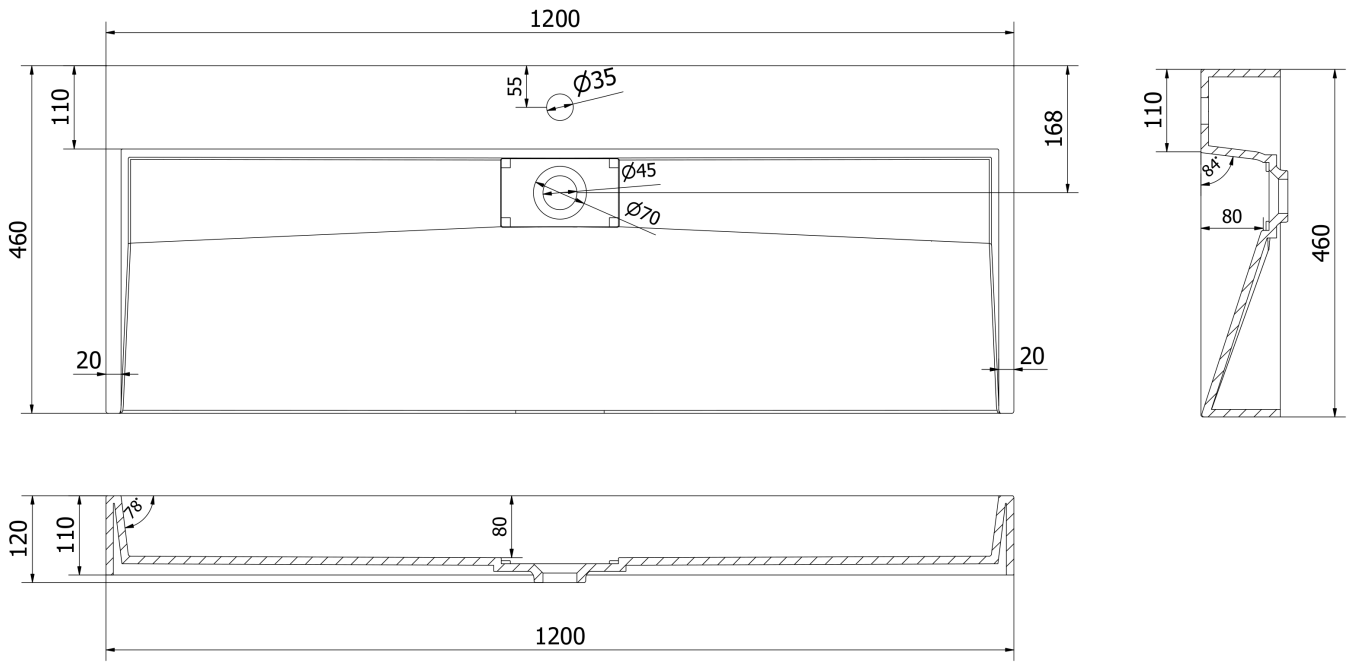 Mexen Ava lavabo sobre encimera de conglomerado 1/O 120 x 46 cm, negro - 23011271