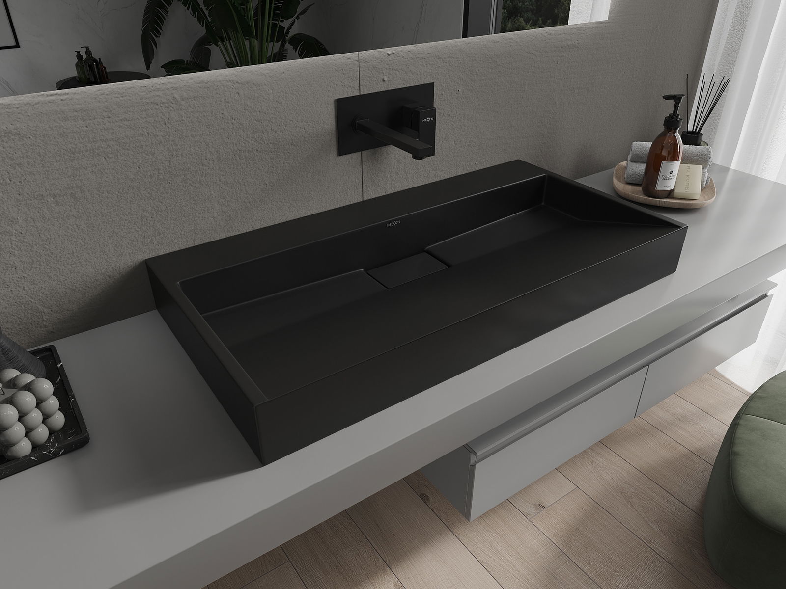 Mexen Ava lavabo sobre encimera de conglomerado B/O 90 x 46 cm, negro - 23019070