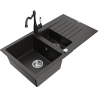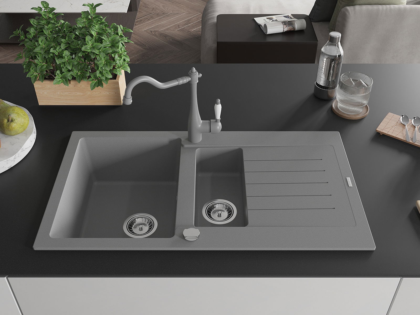 Mexen Matias fregadero de granito 1,5 senos con escurridor y grifo de cocina Carla, gris - 6502-71-670700-71