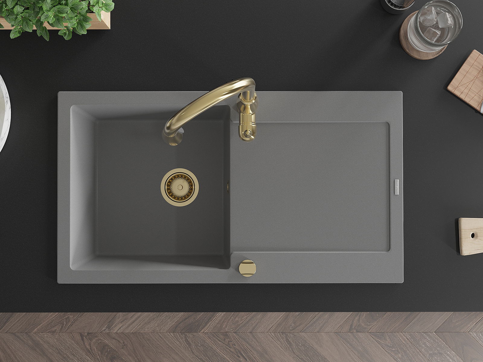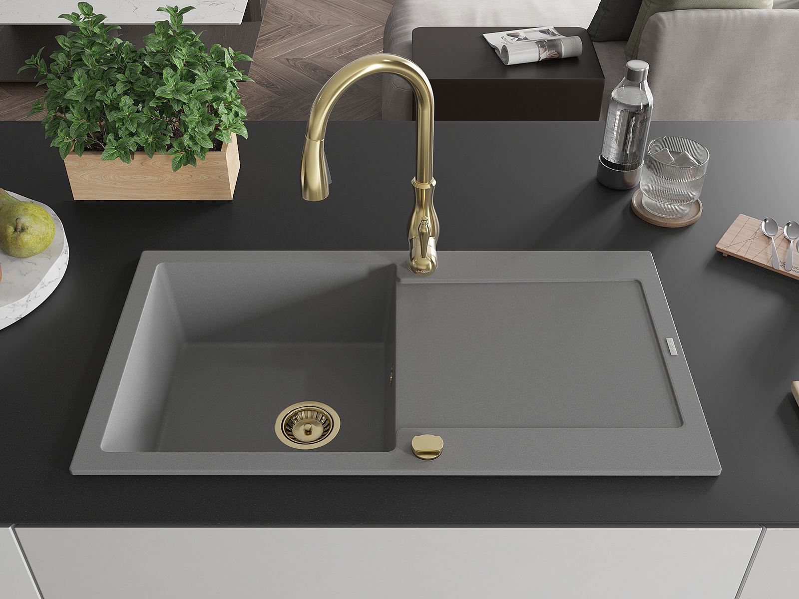 El fregadero está hecho de granito de alta calidad. Constituye un complemento elegante y, sobre todo, práctico para cualquier cocina, independientemente de su estilo. La alta calidad y durabilidad del granito aseguran un uso durante muchos años.