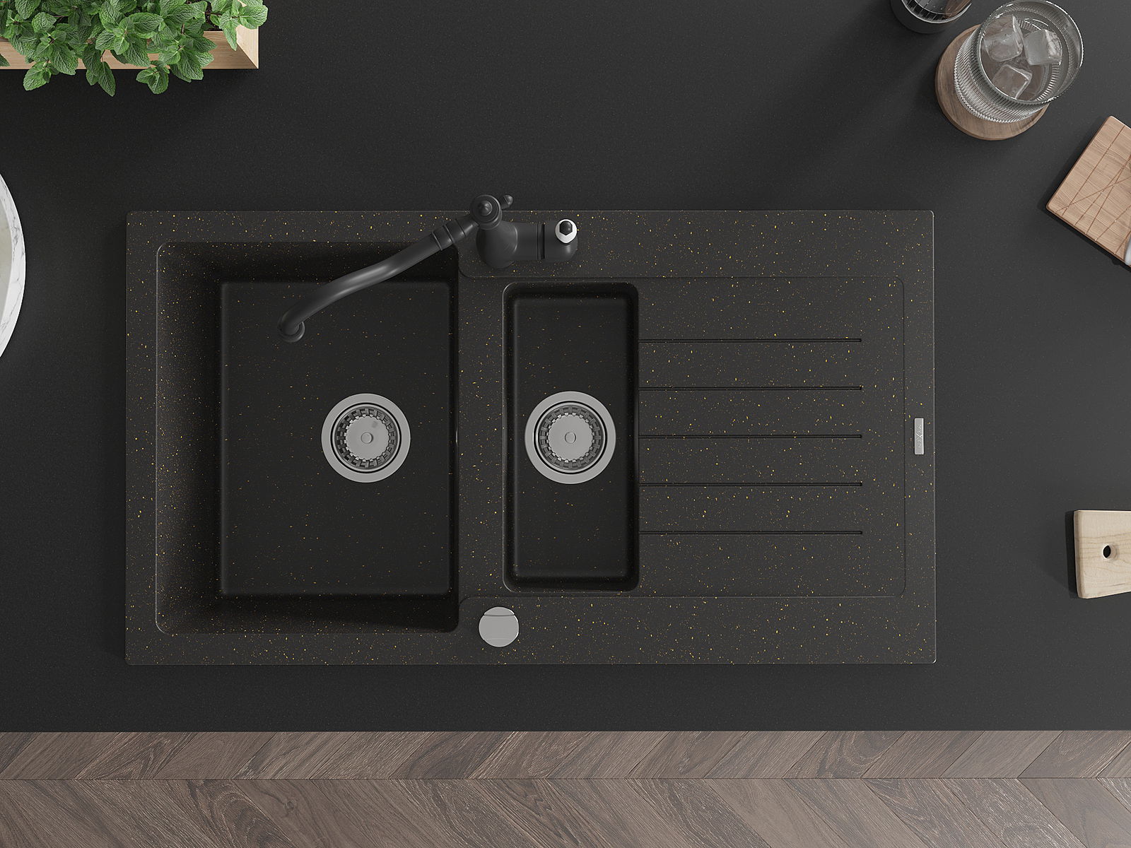 El fregadero está hecho de granito de alta calidad. Constituye un complemento elegante y, sobre todo, práctico para cualquier cocina, independientemente de su estilo. La alta calidad y durabilidad del granito aseguran un uso durante muchos años.