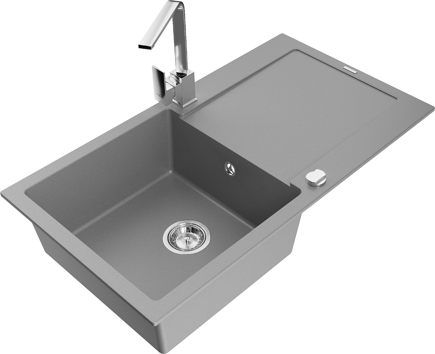 Mexen Leo fregadero de granito de 1 compartimento con escurridor y grifo de cocina Rita, gris - 6501-71-670300-00