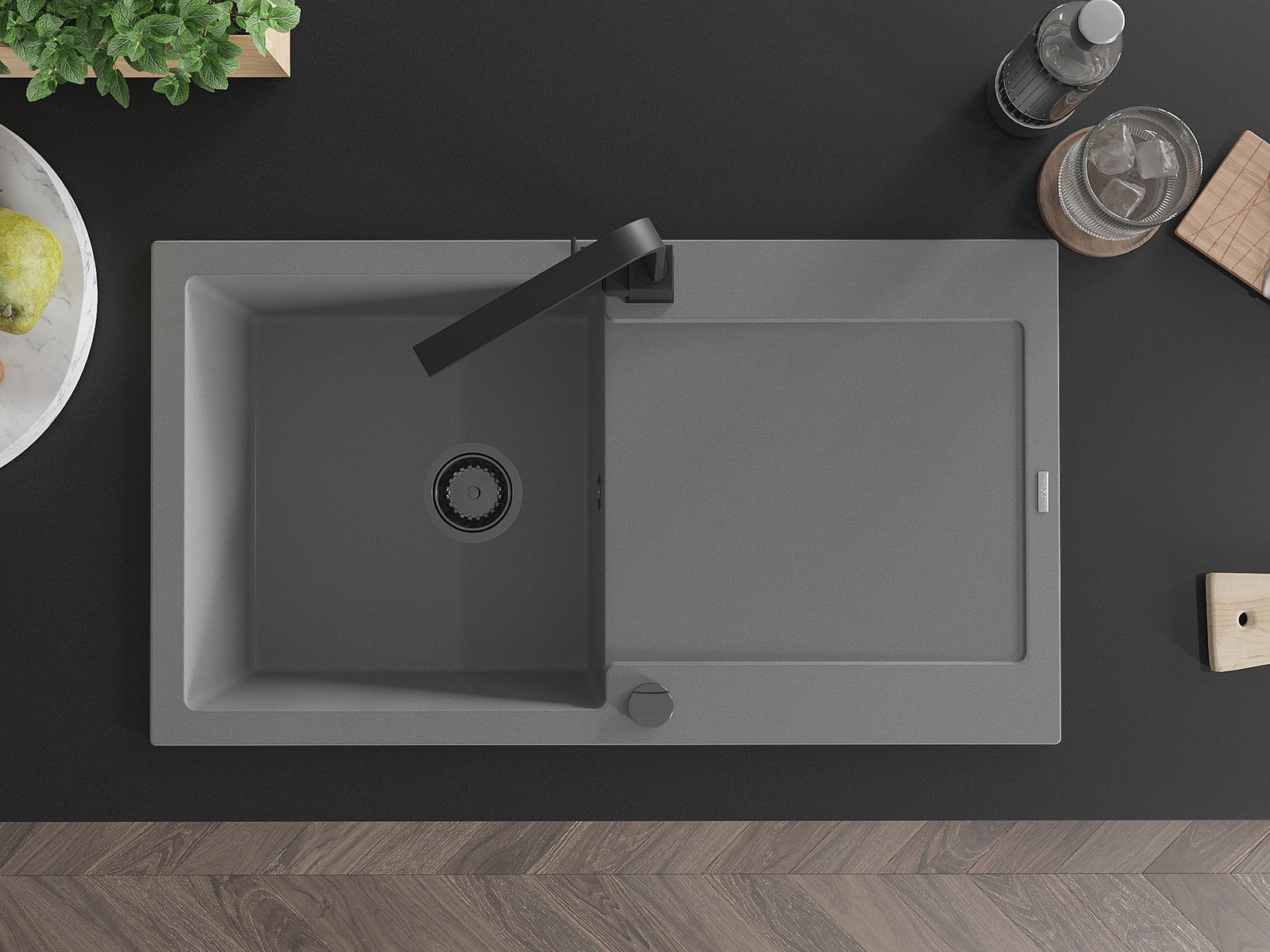 El fregadero está hecho de granito de alta calidad. Constituye un complemento elegante y, sobre todo, práctico para cualquier cocina, independientemente de su estilo. La alta calidad y durabilidad del granito aseguran un uso durante muchos años.