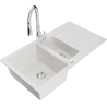 Mexen Matias fregadero de granito 1,5 senos con escurridor y grifo de cocina Savita, beige - 6502-69-672601-00