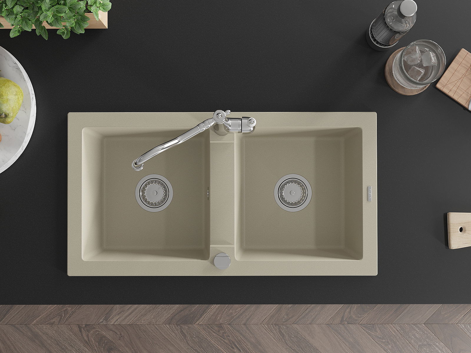 El fregadero está hecho de granito de alta calidad. Constituye un complemento elegante y, sobre todo, práctico para cualquier cocina, independientemente de su estilo. La alta calidad y durabilidad del granito aseguran un uso durante muchos años.