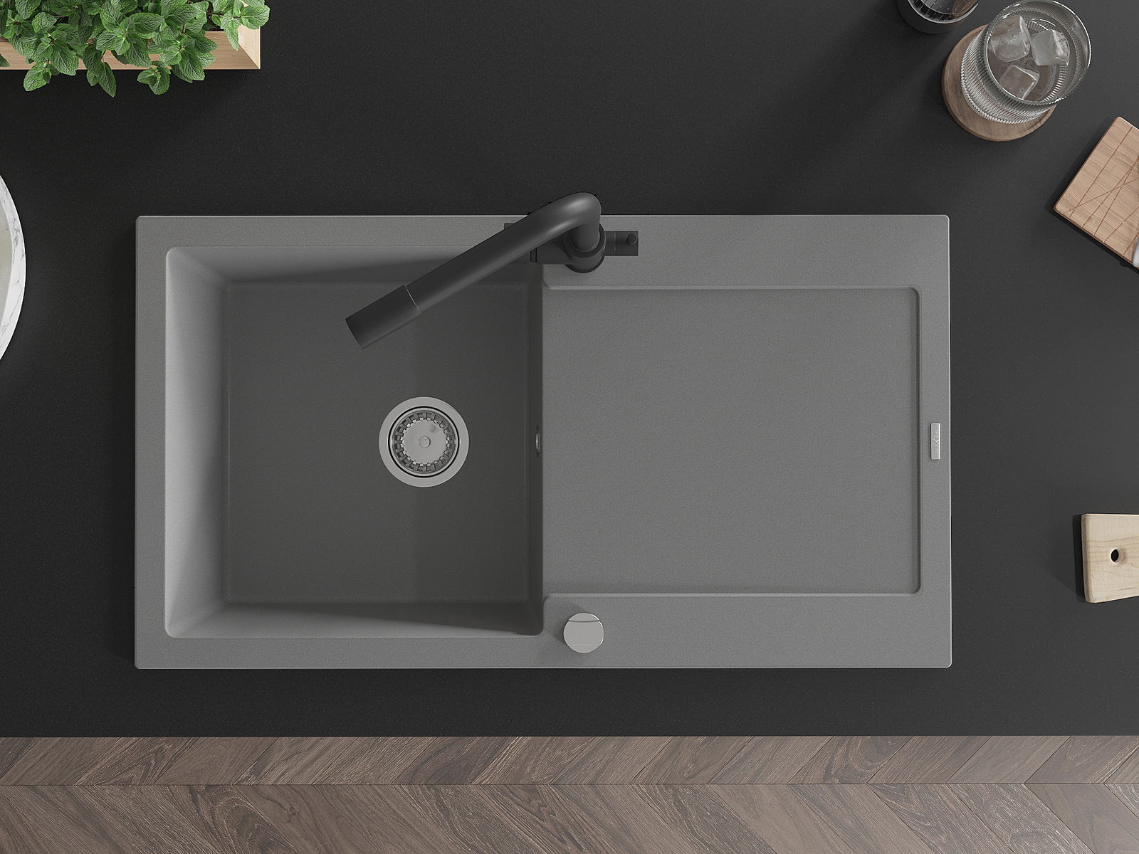 El fregadero está hecho de granito de alta calidad. Constituye un complemento elegante y, sobre todo, práctico para cualquier cocina, independientemente de su estilo. La alta calidad y durabilidad del granito aseguran un uso durante muchos años.