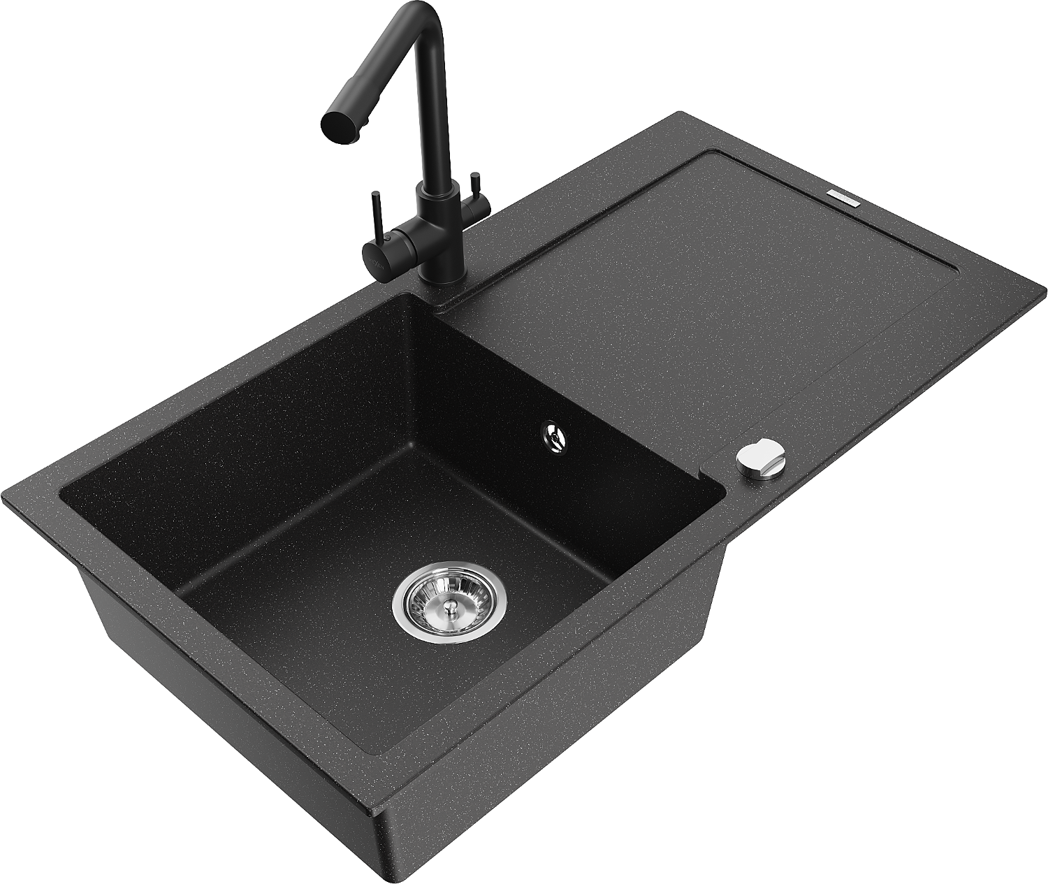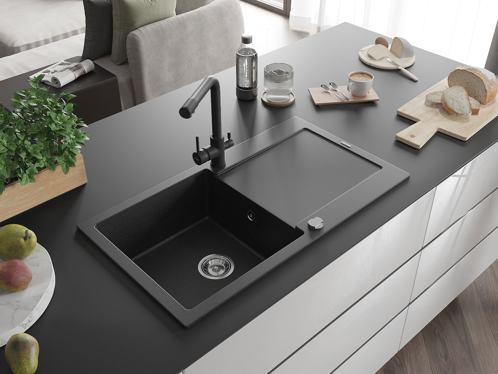 El fregadero está hecho de granito de alta calidad. Es un complemento elegante y, sobre todo, práctico para cualquier cocina, independientemente de su estilo. La alta calidad y durabilidad del granito aseguran un uso prolongado durante años.