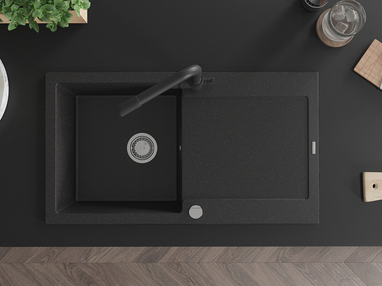 Mexen Leo fregadero de granito de 1 seno con escurridor y grifo de cocina Duero, negro/plateado metálico - 6501-73-671600-70
