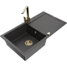 Mexen Leo fregadero de granito de 1 cubeta con escurridor y grifo de cocina Rita, negro - 6501-77-670300-50