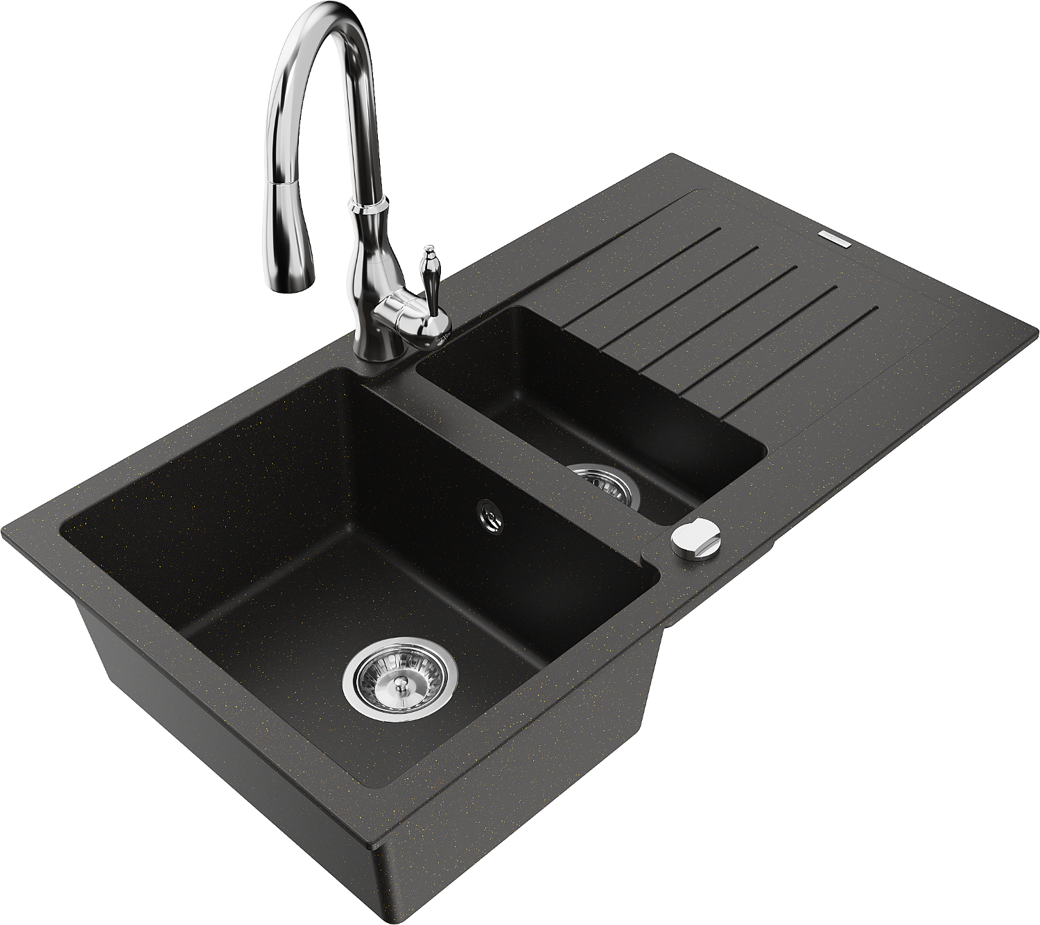 El fregadero está hecho de granito de alta calidad. Constituye un complemento elegante y, sobre todo, práctico para cualquier cocina, independientemente de su estilo. La alta calidad y durabilidad del granito aseguran un uso durante muchos años.