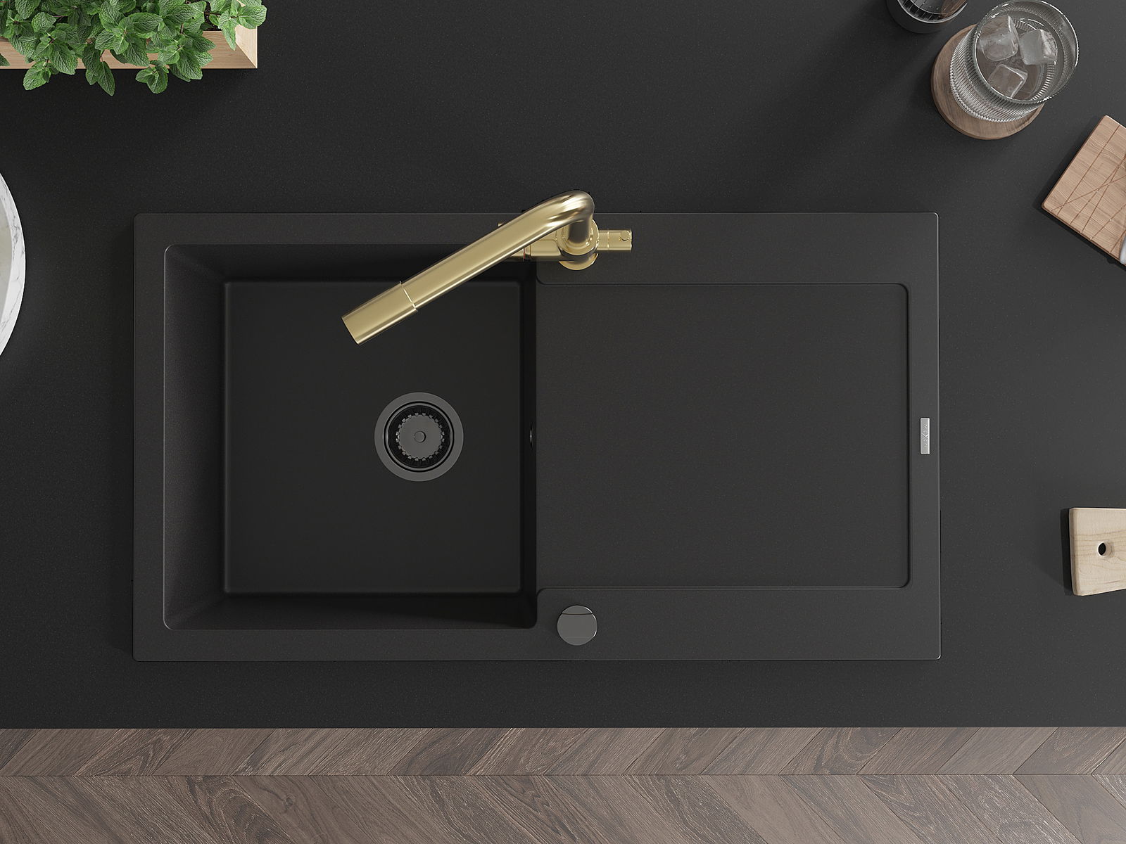 El fregadero está hecho de granito de alta calidad. Constituye un complemento elegante y, sobre todo, práctico para cualquier cocina, independientemente de su estilo. La alta calidad y durabilidad del granito aseguran un uso durante muchos años.