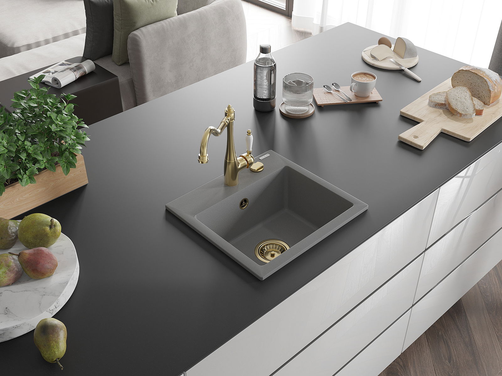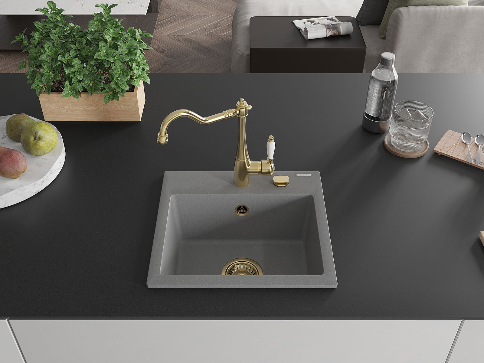 El fregadero está hecho de granito de alta calidad. Es un complemento elegante y, sobre todo, práctico para cualquier cocina, independientemente de su estilo. La alta calidad y durabilidad del granito aseguran un uso prolongado durante años.