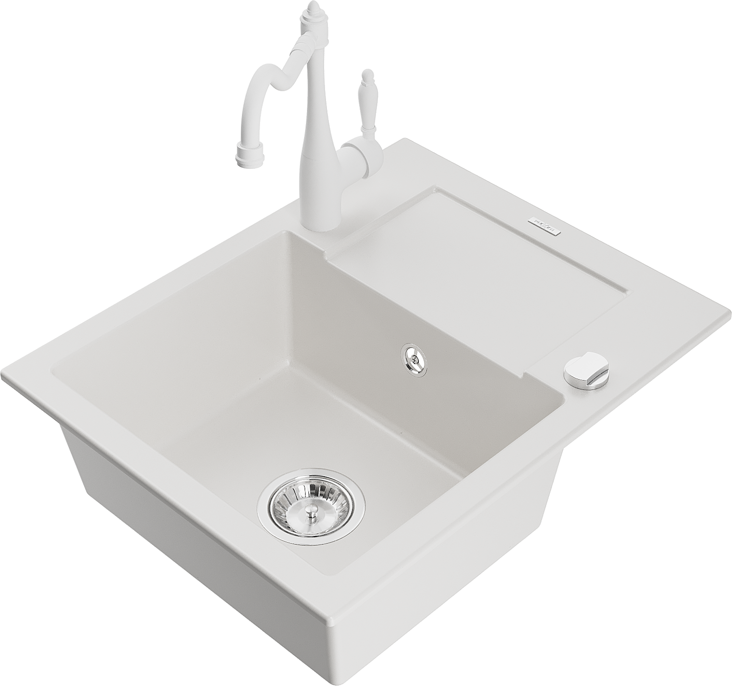 Mexen Enzo fregadero de granito de 1 seno con escurridor y grifo de cocina Carla, blanco - 6506-20-670700-20