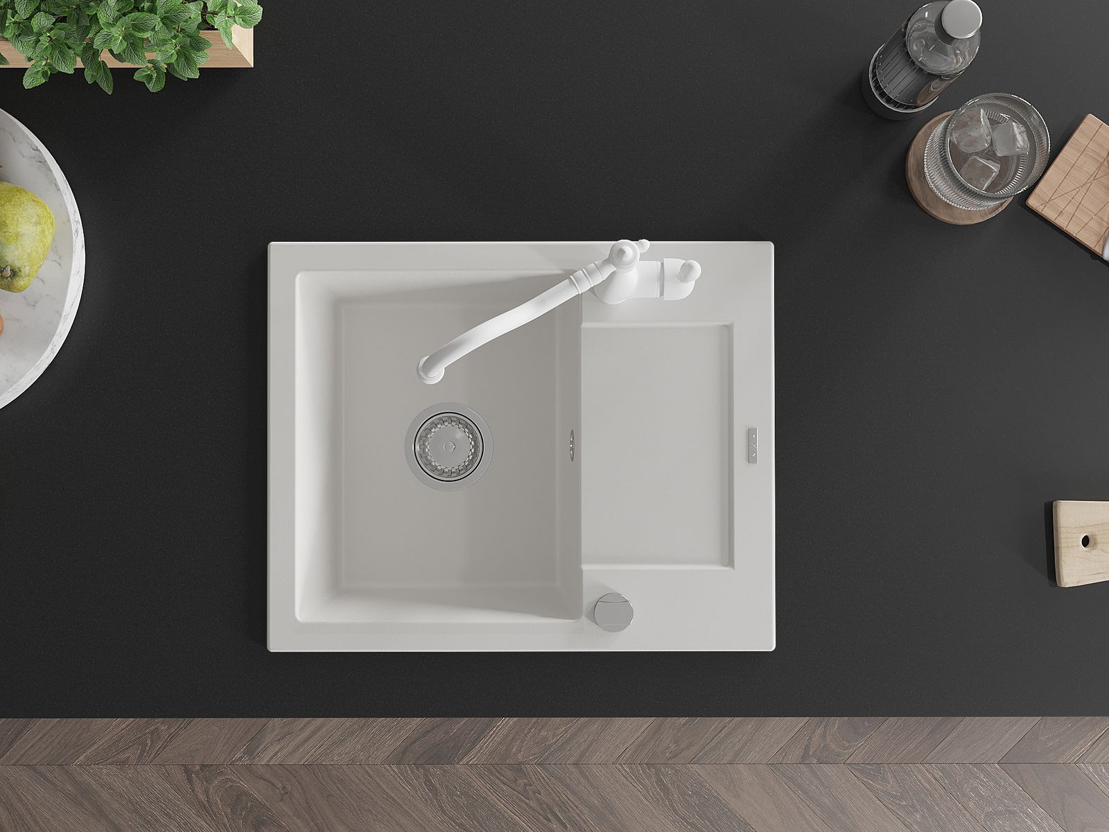 El fregadero está hecho de granito de alta calidad. Constituye un complemento elegante y, sobre todo, práctico para cualquier cocina, independientemente de su estilo. La alta calidad y durabilidad del granito aseguran un uso durante muchos años.
