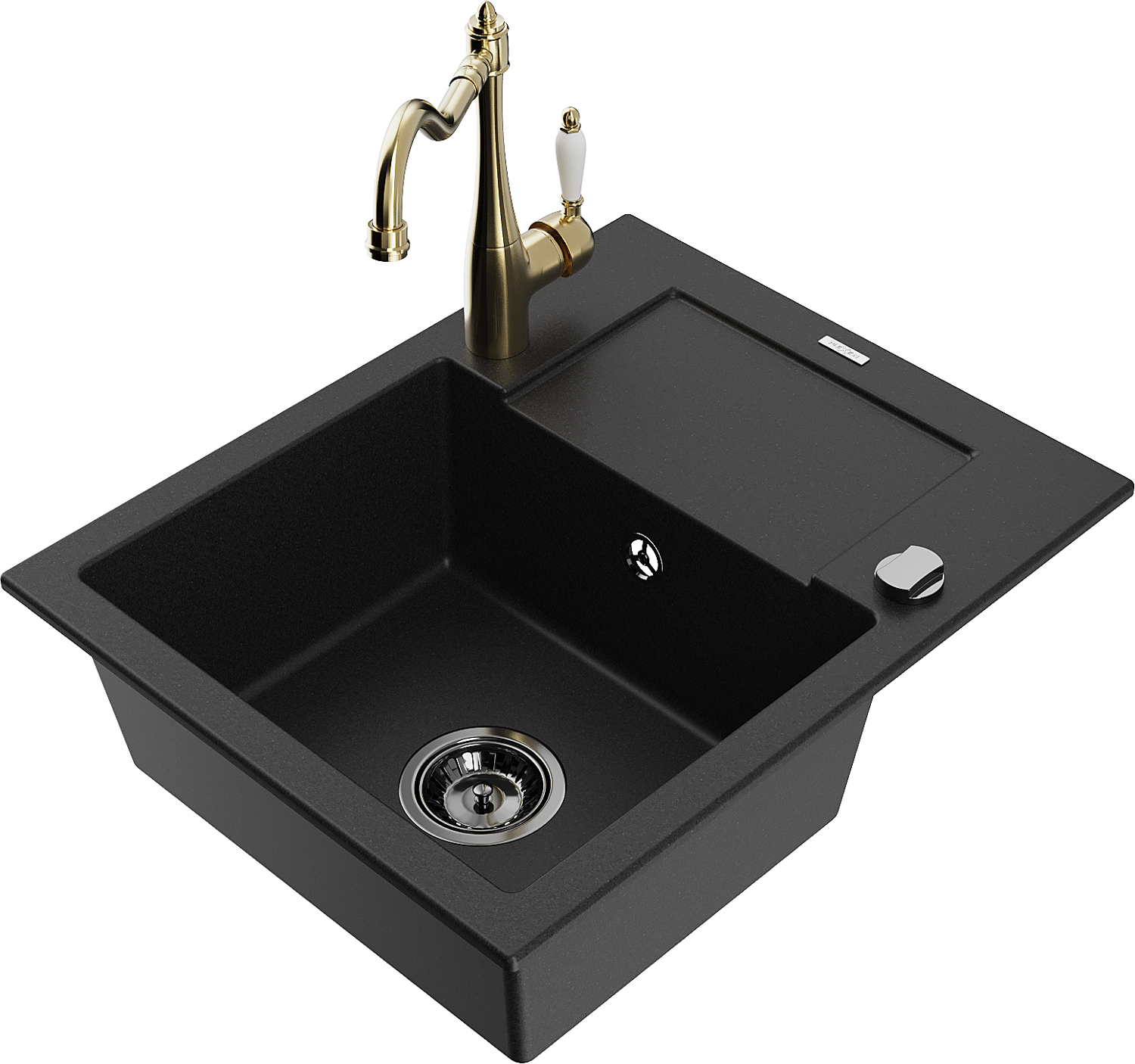 El fregadero está hecho de granito de alta calidad. Es un complemento elegante y, sobre todo, práctico para cualquier cocina, independientemente de su estilo. La alta calidad y durabilidad del granito aseguran un uso prolongado durante años.