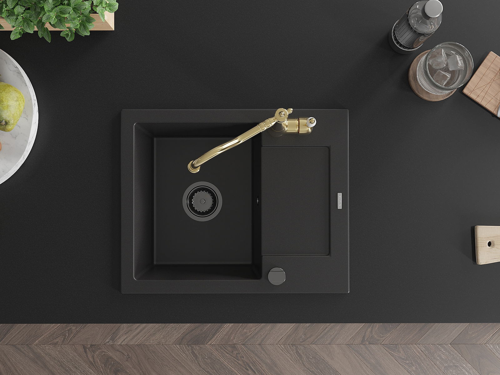 Mexen Enzo fregadero de granito de 1 compartimento con escurridor y grifo de cocina Carla, negro - 6506-77-670700-50-B