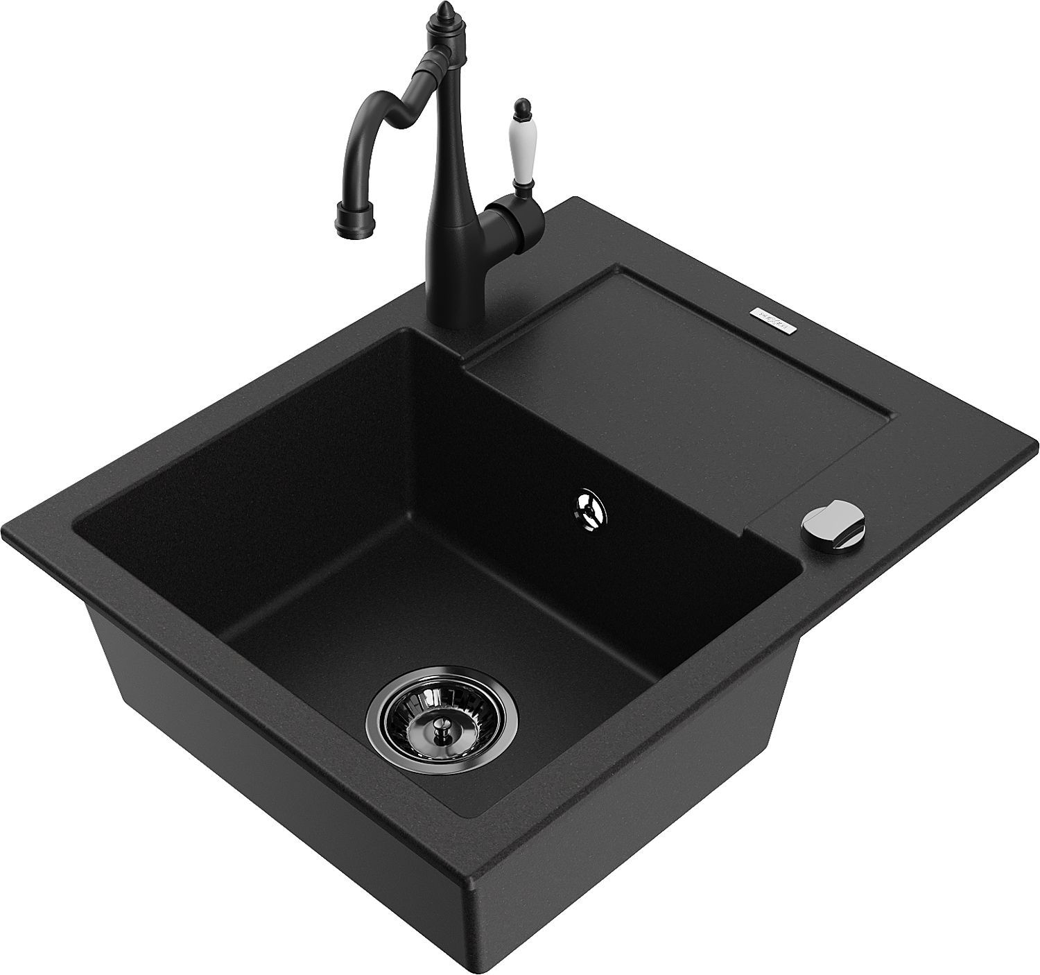 Mexen Enzo fregadero de granito de 1 cubeta con escurridor y grifo de cocina Carla, negro - 6506-77-670700-70-B