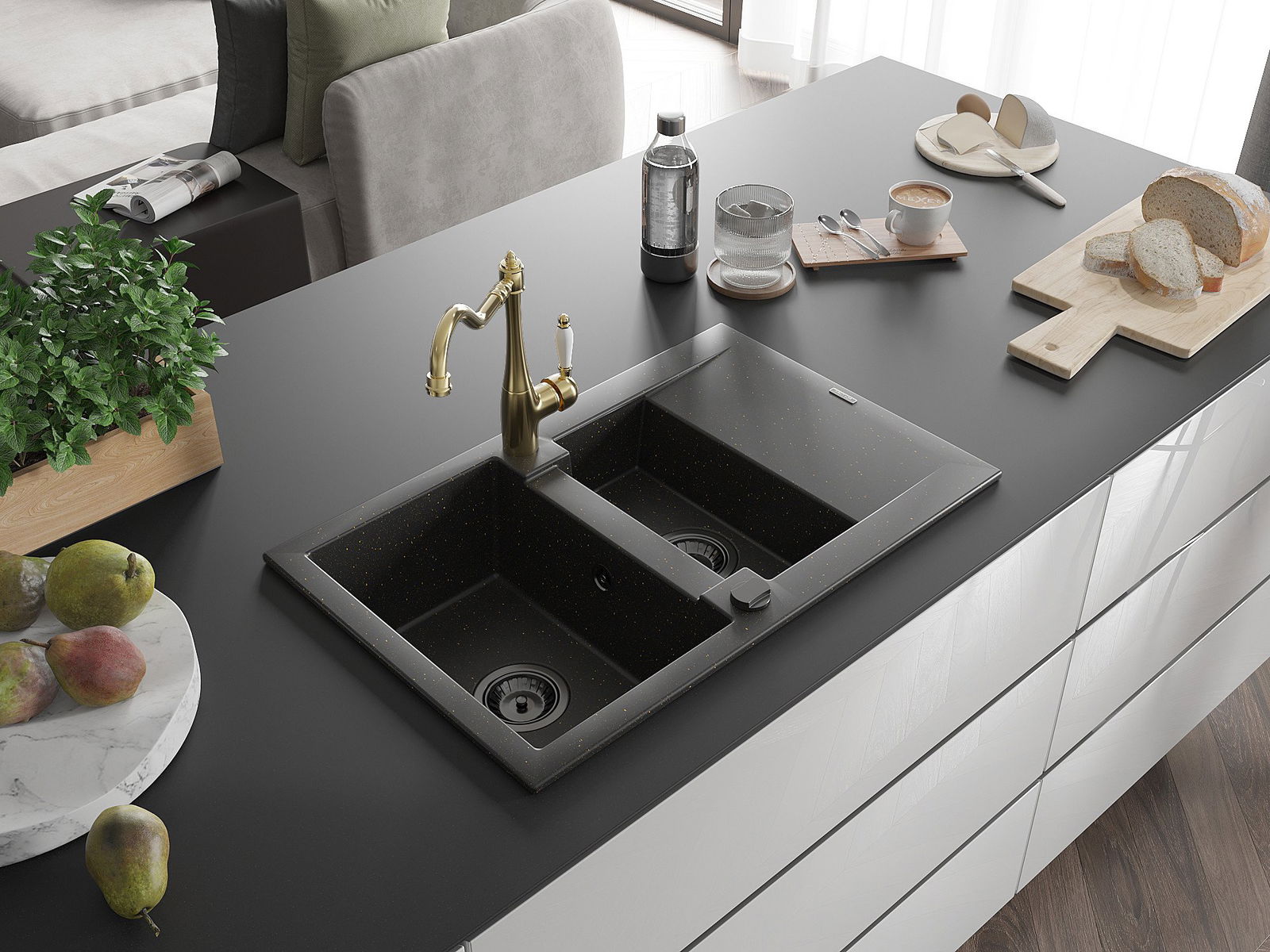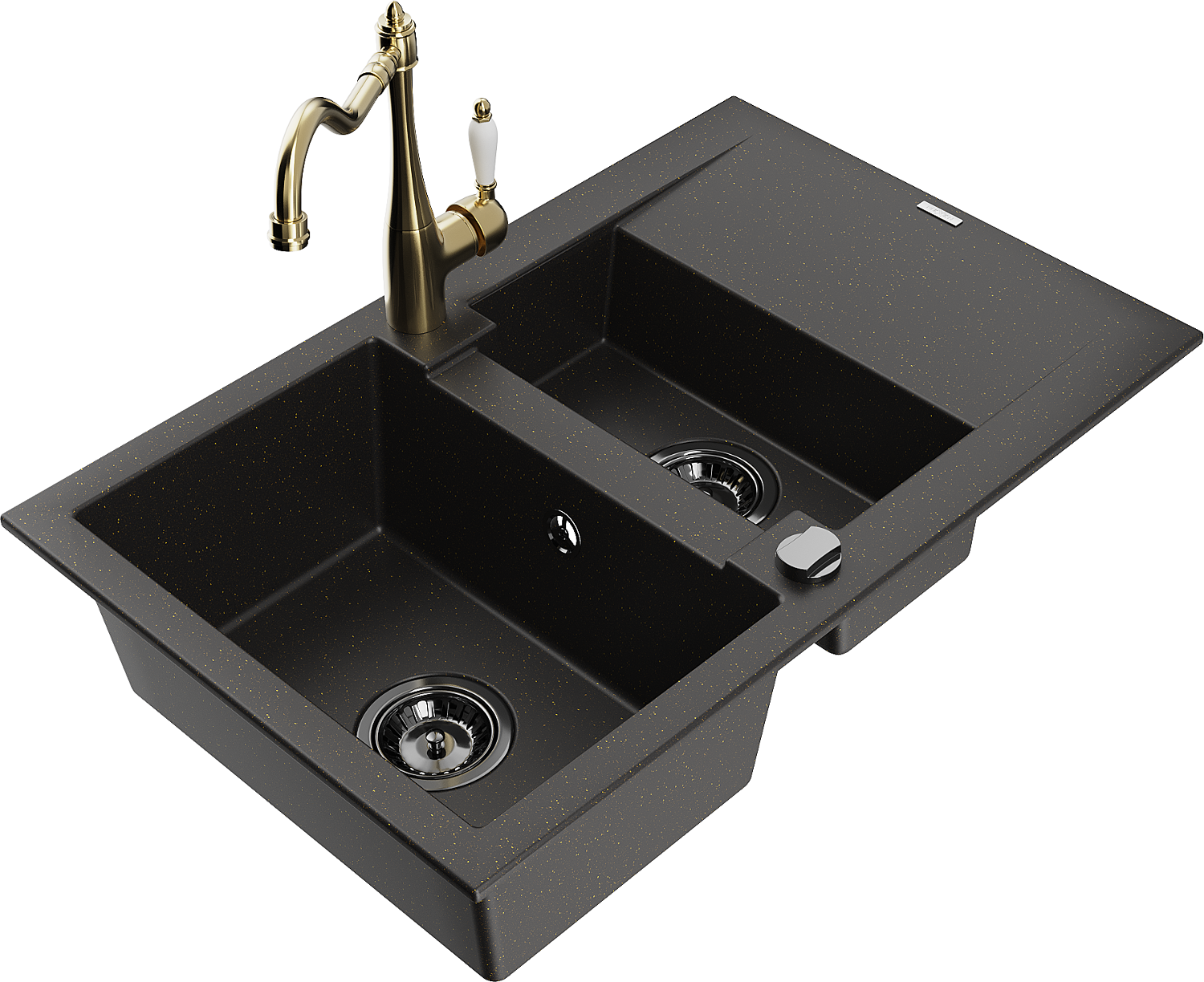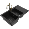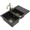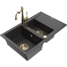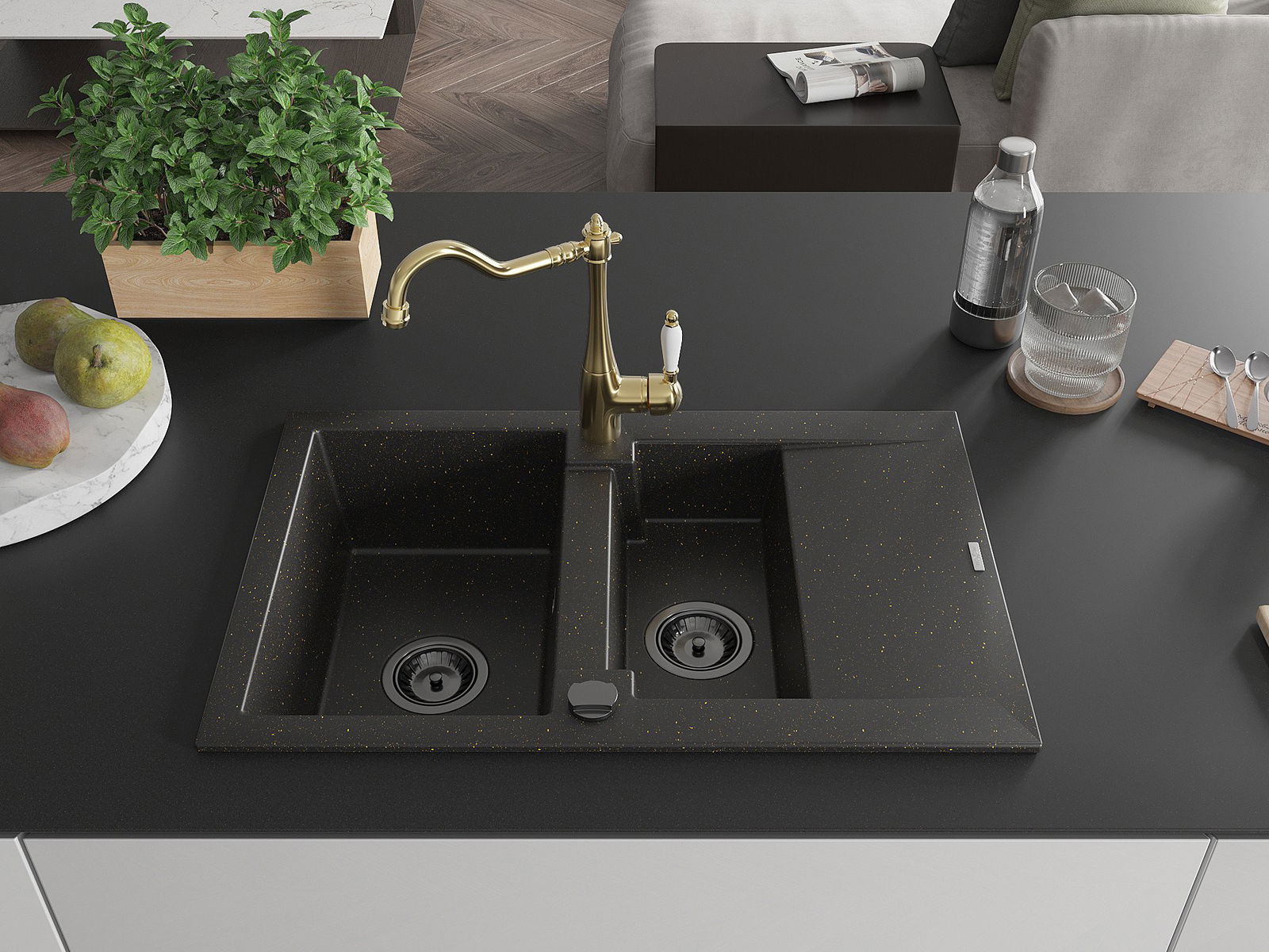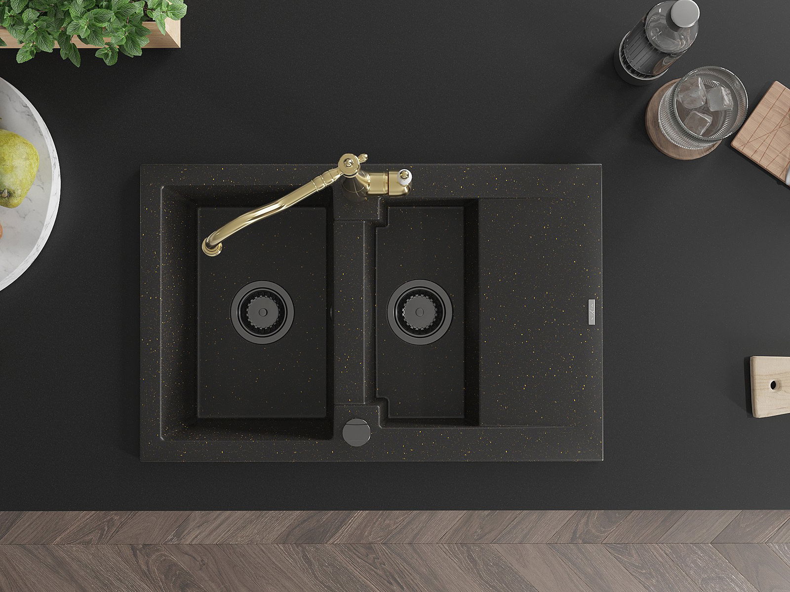 Mexen Gaspar fregadero de granito de 1,5 senos con escurridor y grifo de cocina Carla negro/dorado metálico