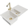 Mexen Matias fregadero de granito 1,5 cuencas con escurridor y grifo de cocina Duero, beige - 6502-69-671600-50