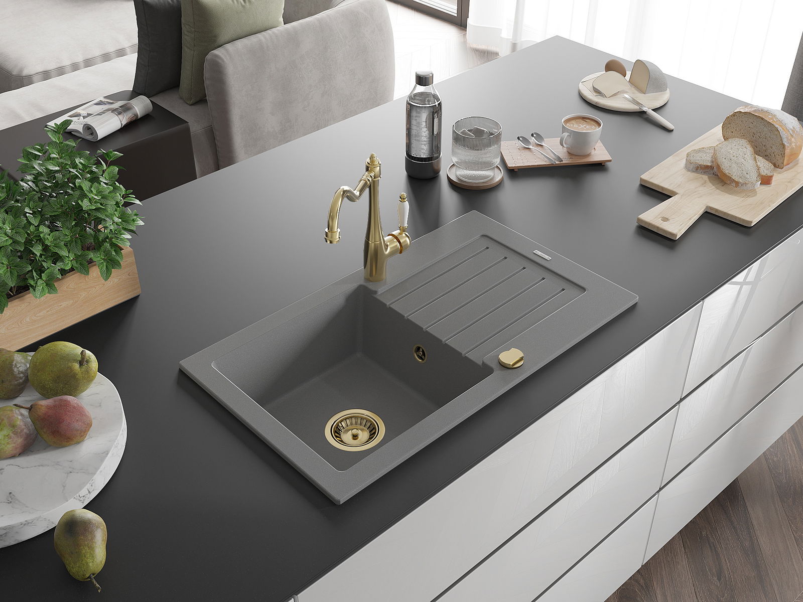 El fregadero está hecho de granito de alta calidad. Constituye un complemento elegante y, sobre todo, práctico para cualquier cocina, independientemente de su estilo. La alta calidad y durabilidad del granito aseguran un uso durante muchos años.