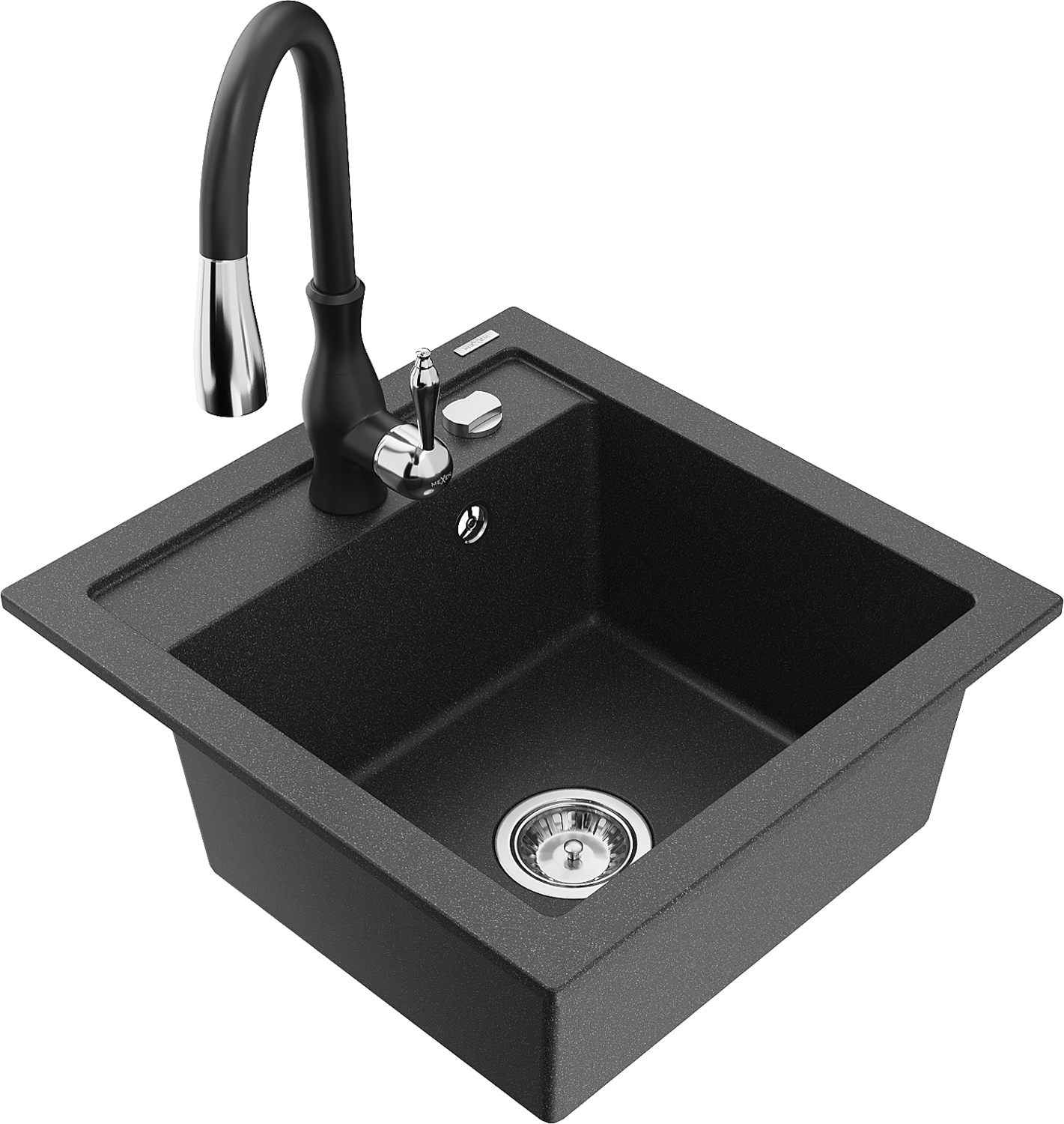 Mexen Vito fregadero de granito de 1 seno con grifo de cocina Savita, negro moteado - 6503-76-672601-70