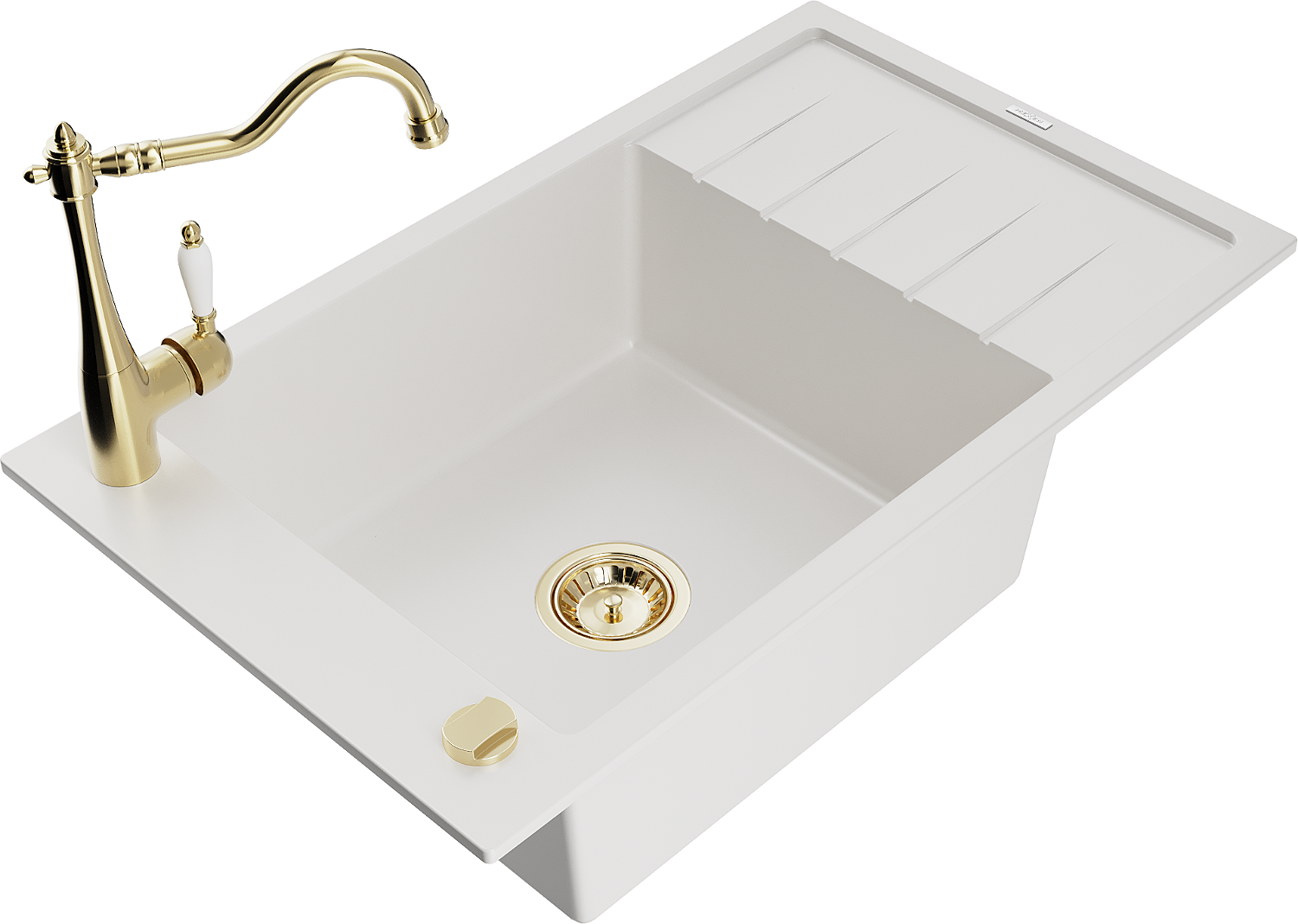 Mexen Elias fregadero de granito de 1 taza con escurridor y grifo de cocina Carla, blanco - 6511-20-670700-50