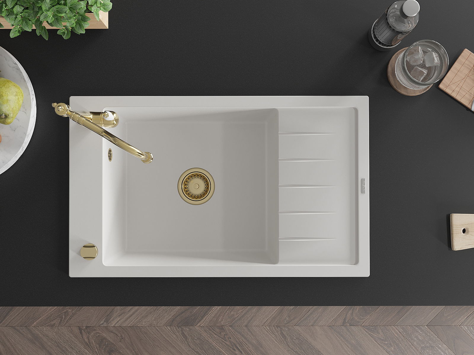 El fregadero está hecho de granito de alta calidad. Constituye un complemento elegante y, sobre todo, práctico para cualquier cocina, independientemente de su estilo. La alta calidad y durabilidad del granito aseguran un uso durante muchos años.