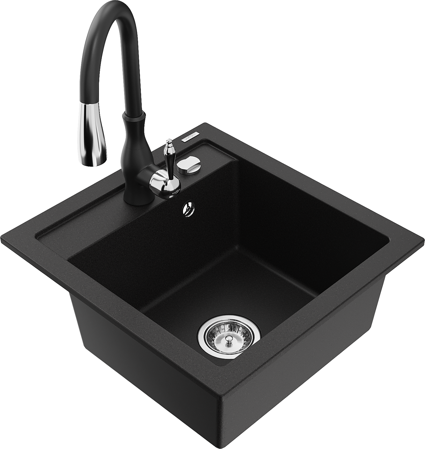 Mexen Vito fregadero de granito de 1 tazón con grifo de cocina Savita, negro - 6503-77-672601-70