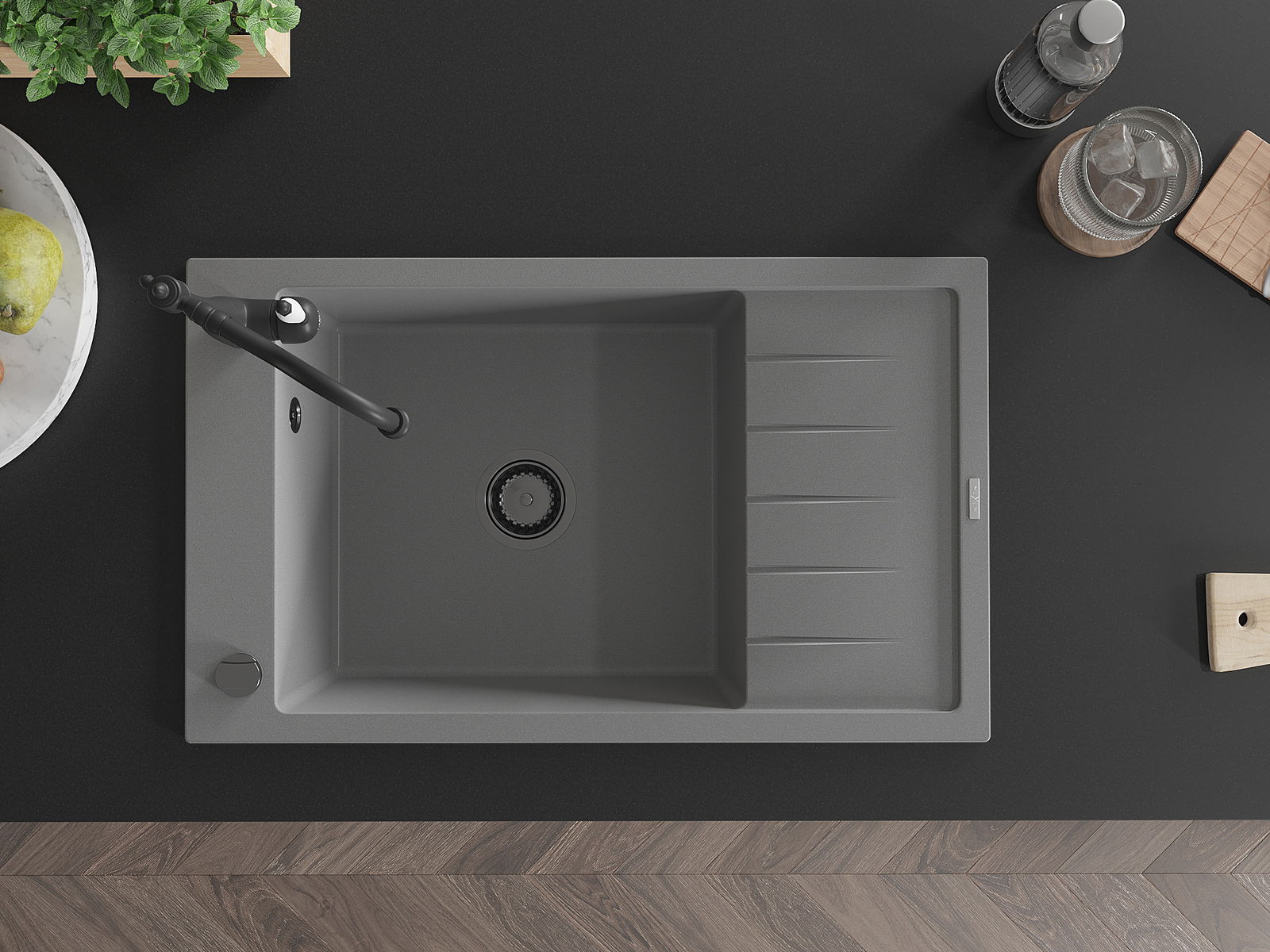El fregadero está hecho de granito de alta calidad. Constituye un complemento elegante y, sobre todo, práctico para cualquier cocina, independientemente de su estilo. La alta calidad y durabilidad del granito aseguran un uso durante muchos años.