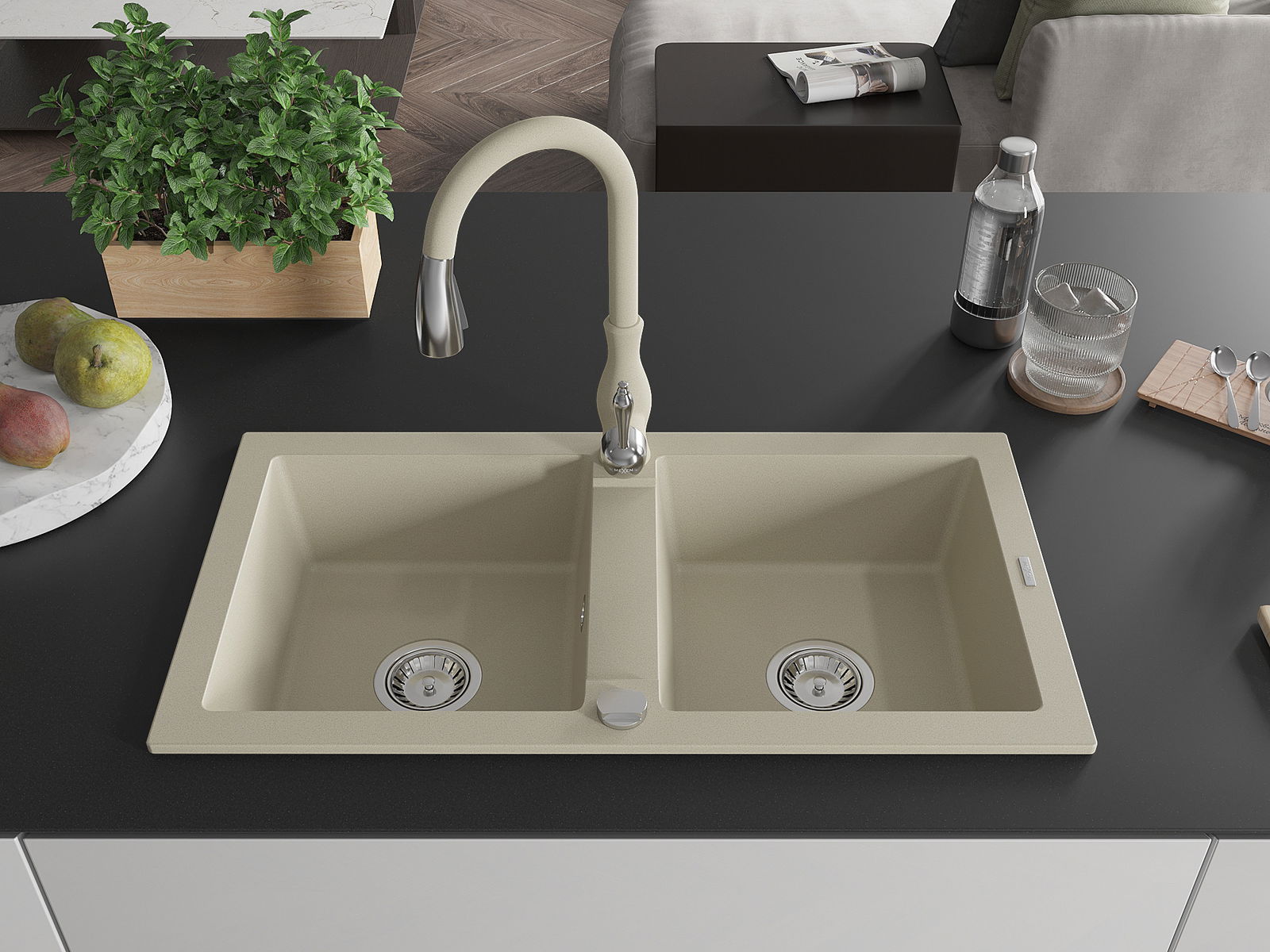 El fregadero está hecho de granito de alta calidad. Constituye un complemento elegante y, sobre todo, práctico para cualquier cocina, independientemente de su estilo. La alta calidad y durabilidad del granito aseguran un uso durante muchos años.