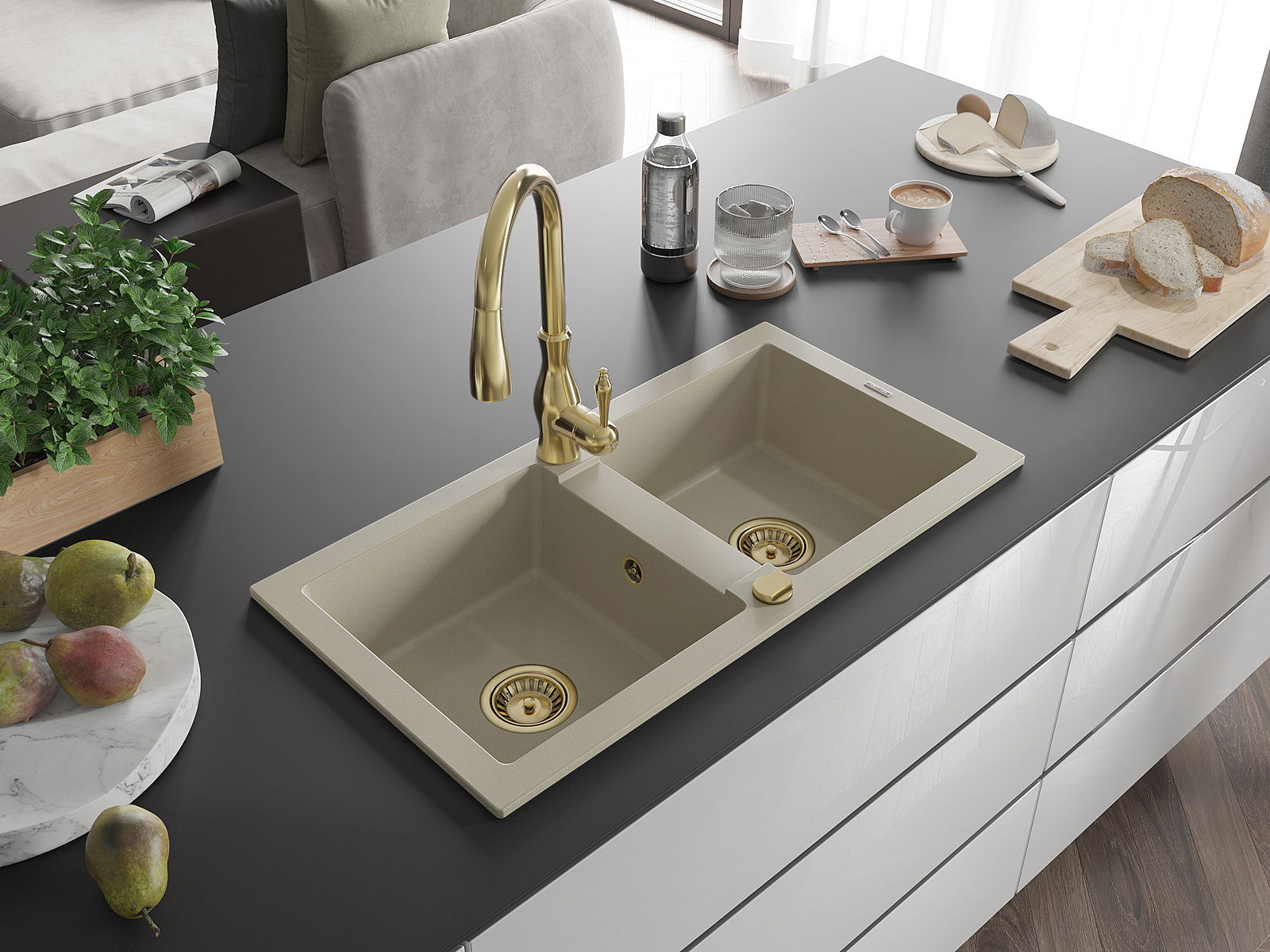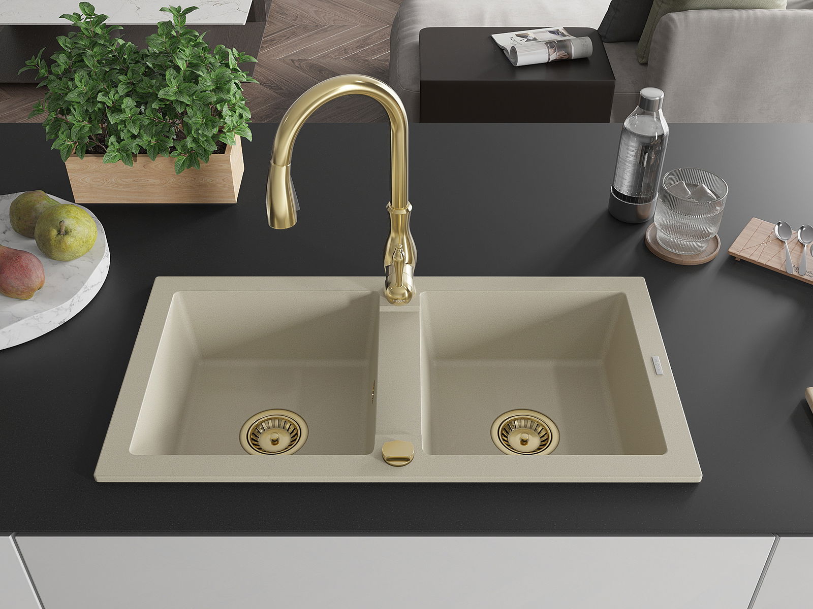 El fregadero está hecho de granito de alta calidad. Constituye un complemento elegante y, sobre todo, práctico para cualquier cocina, independientemente de su estilo. La alta calidad y durabilidad del granito aseguran un uso durante muchos años.