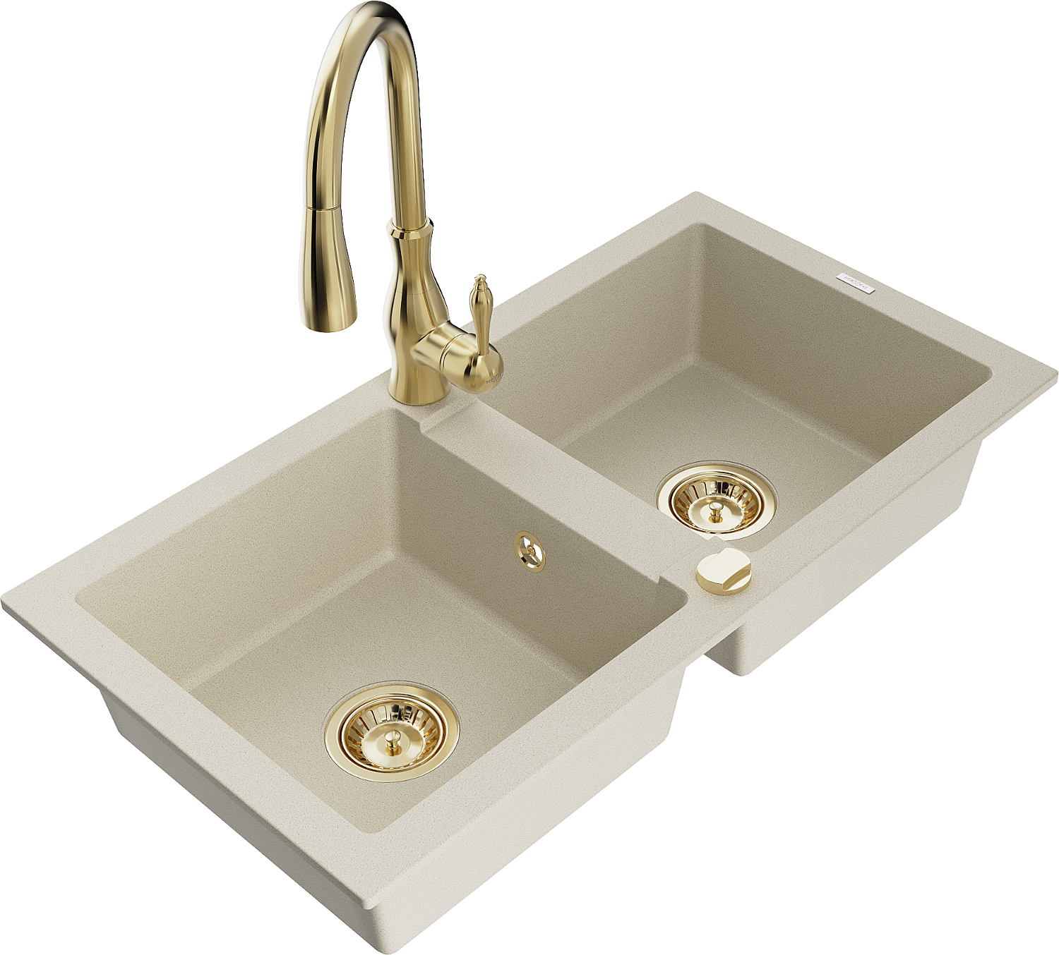 Mexen Mario fregadero de granito de 2 compartimentos con grifo de cocina Savita, beige - 6504-69-672601-50