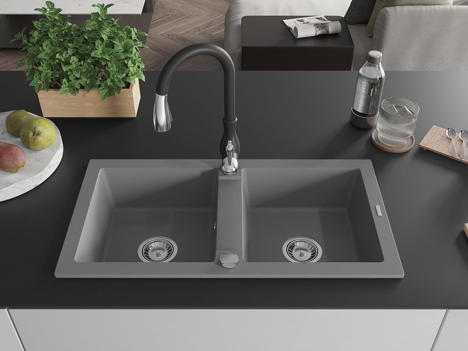 El fregadero está hecho de granito de alta calidad. Constituye un complemento elegante y, sobre todo, práctico para cualquier cocina, independientemente de su estilo. La alta calidad y durabilidad del granito aseguran un uso durante muchos años.