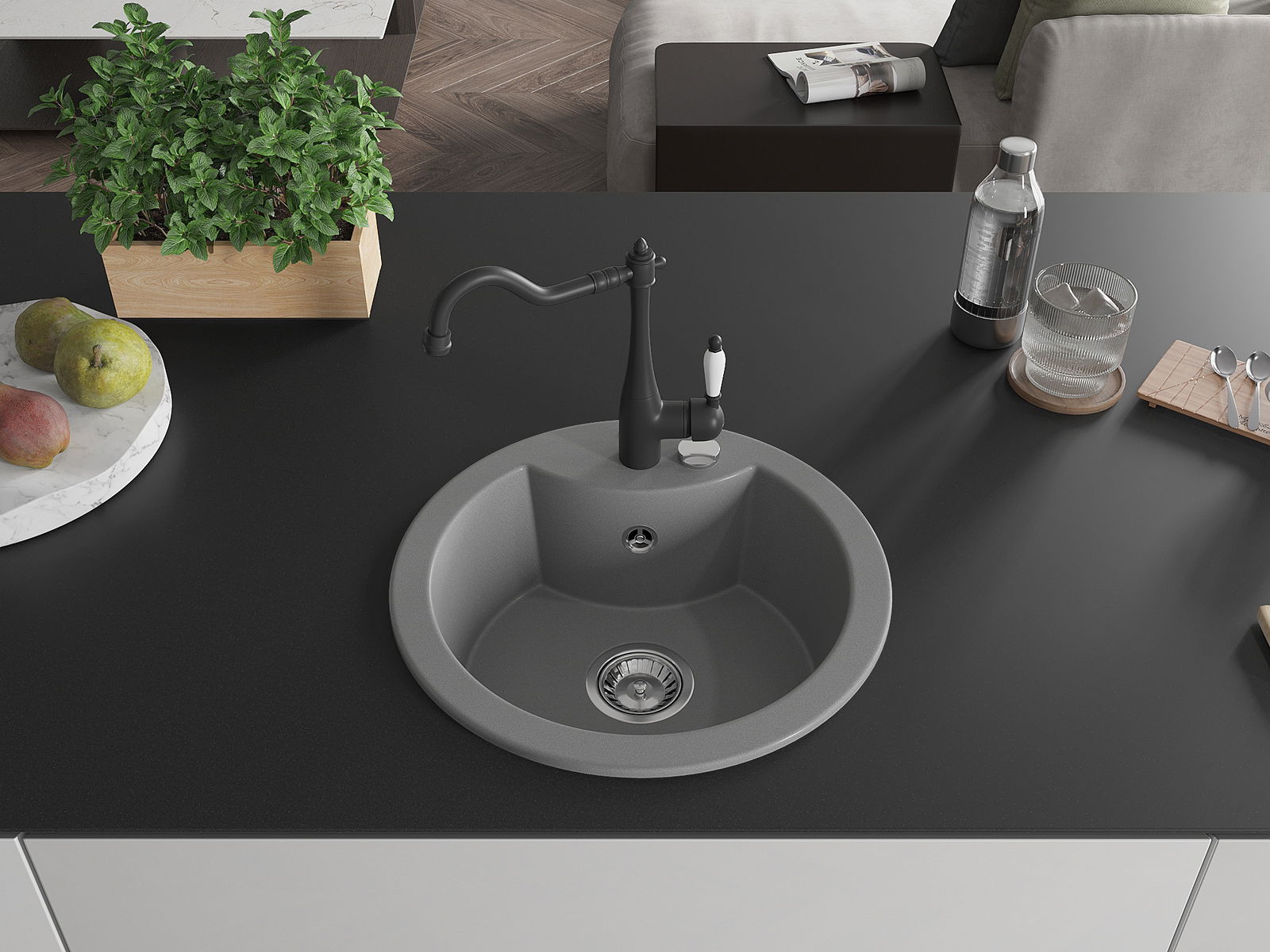 El fregadero está hecho de granito de alta calidad. Constituye un complemento elegante y, sobre todo, práctico para cualquier cocina, independientemente de su estilo. La alta calidad y durabilidad del granito aseguran un uso durante muchos años.