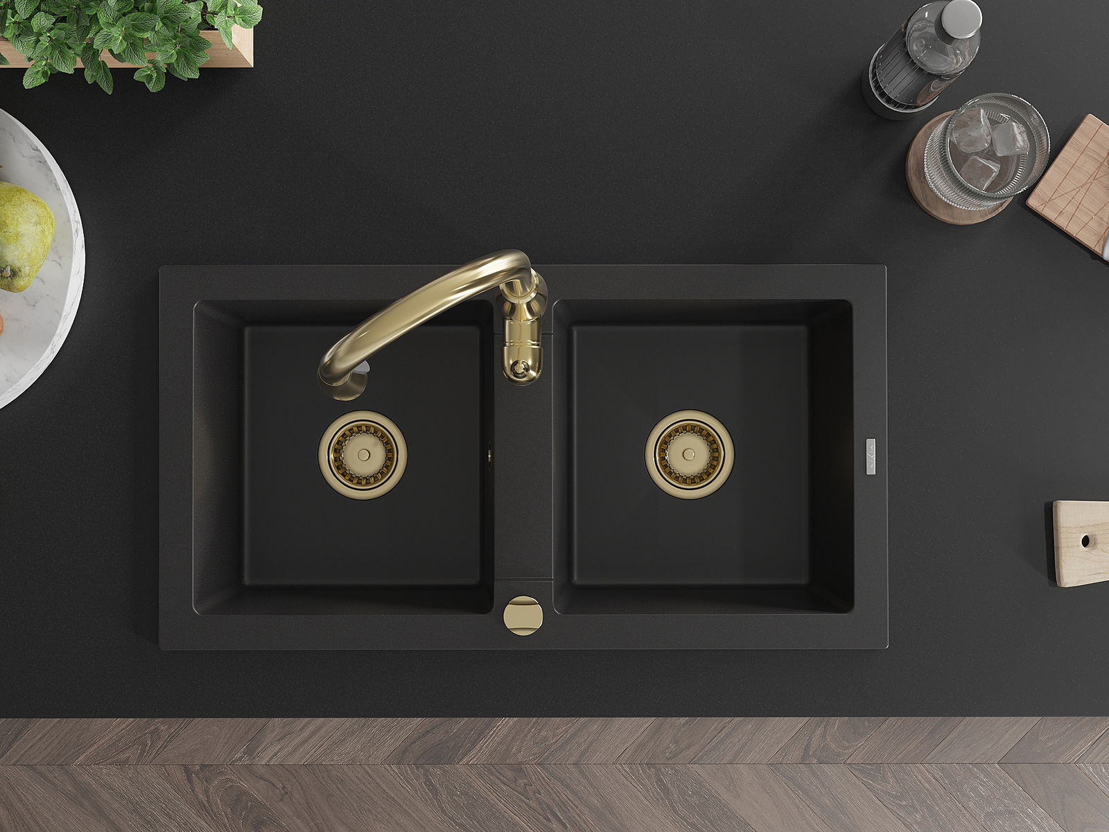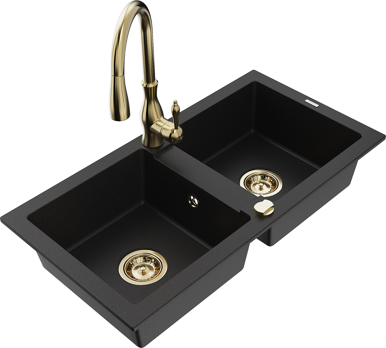 Mexen Mario fregadero de granito 2 compartimentos con grifo de cocina Savita, negro - 6504-77-672601-50