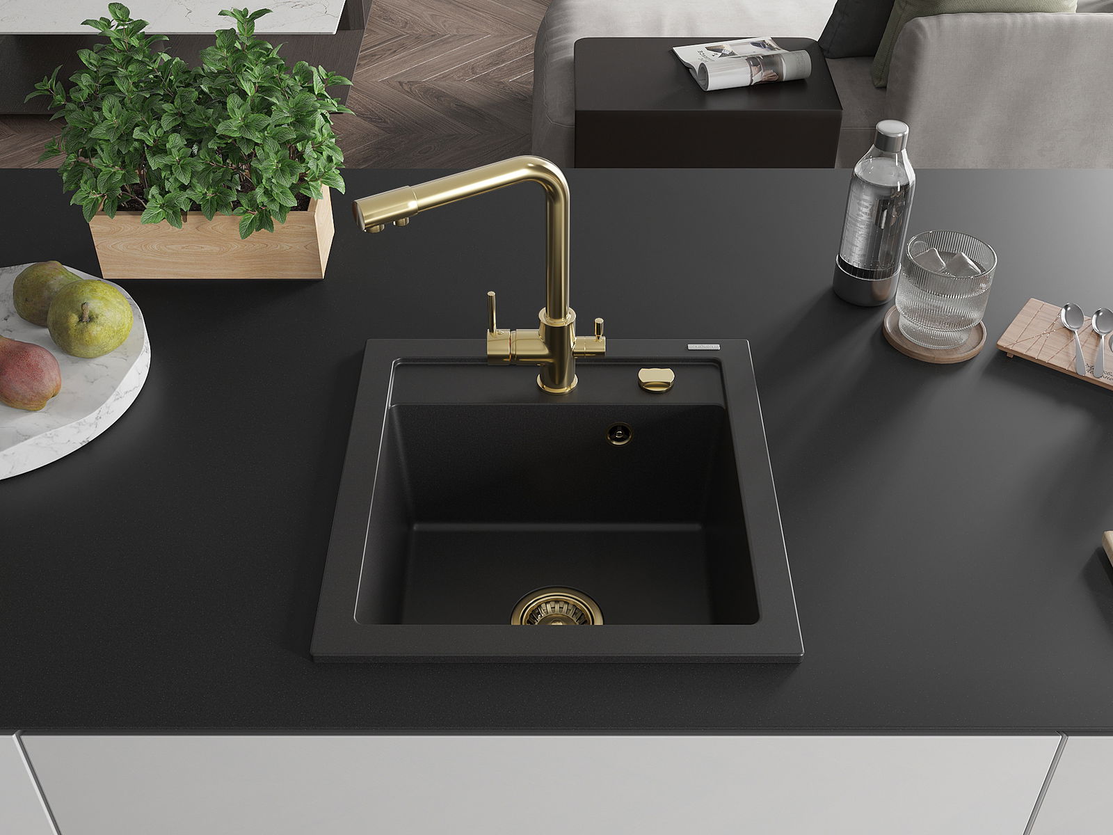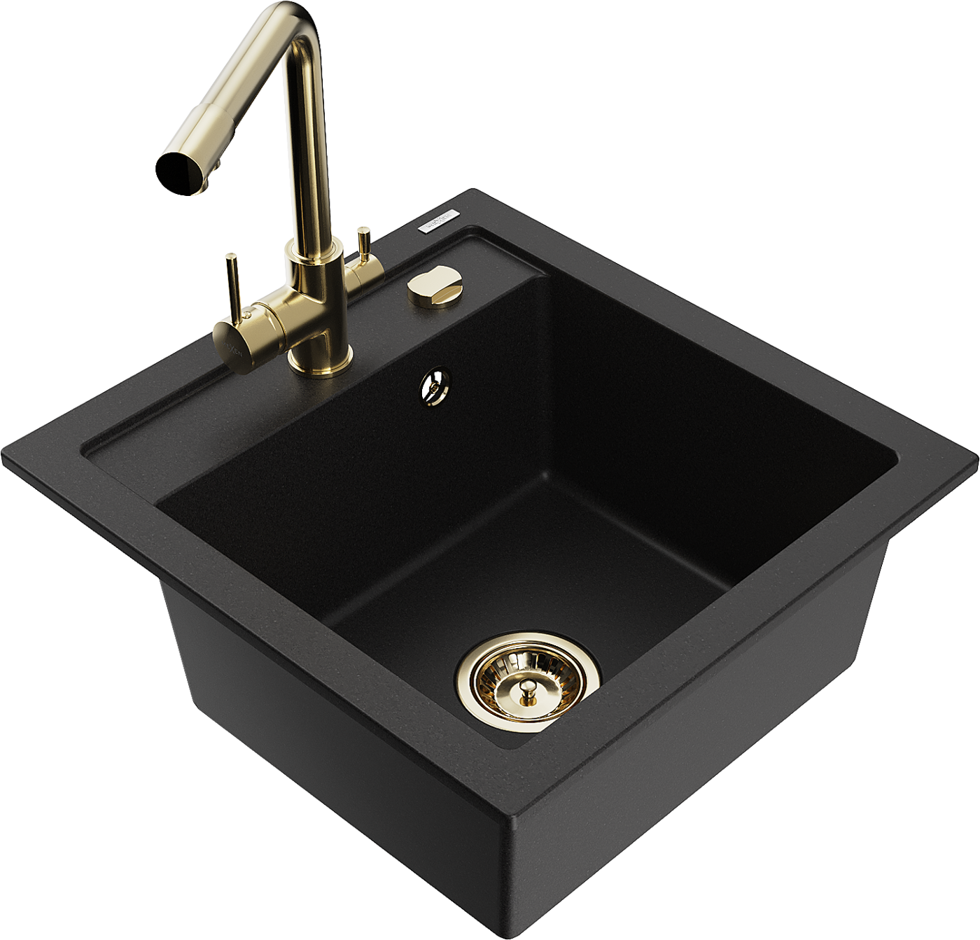 Mexen Vito fregadero de granito de 1 cubeta con grifo de cocina Duero, negro - 6503-77-671600-50