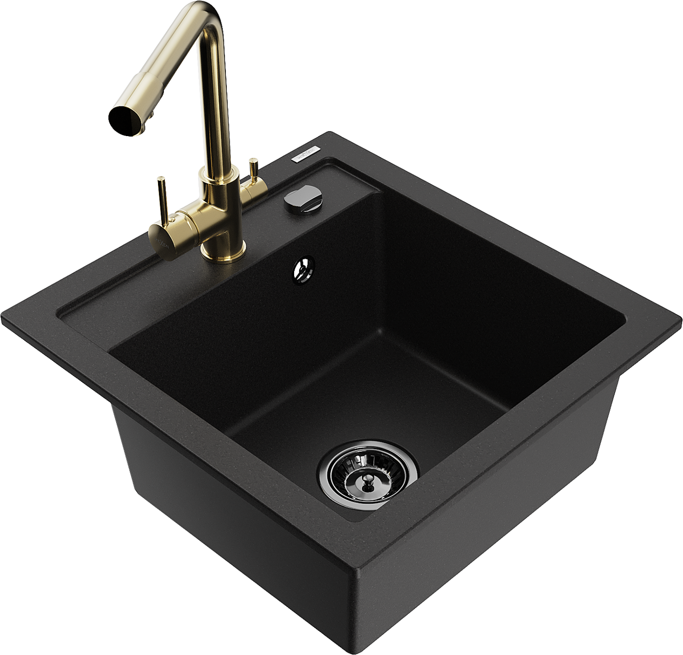 Mexen Vito fregadero de granito de 1 compartimento con grifo de cocina Duero, negro - 6503-77-671600-50-B