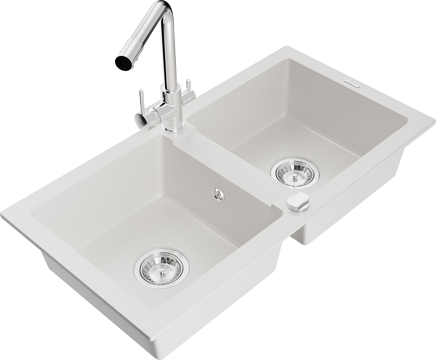 Mexen Mario fregadero de granito de 2 compartimentos con grifo de cocina Duero, blanco - 6504-20-671600-00