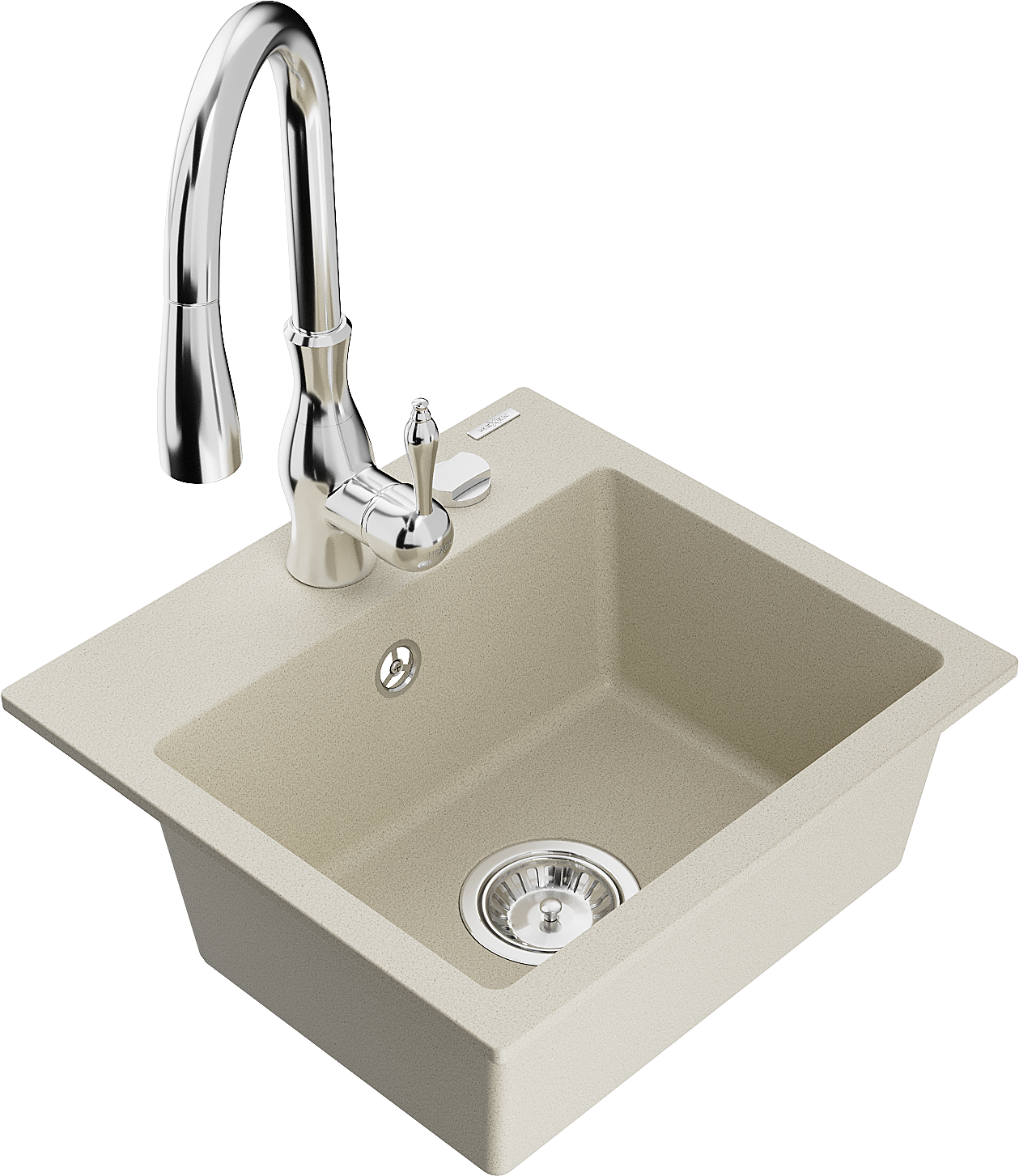 Mexen Milo fregadero de granito de 1 seno con grifo de cocina Savita, beige - 6505-69-672601-00