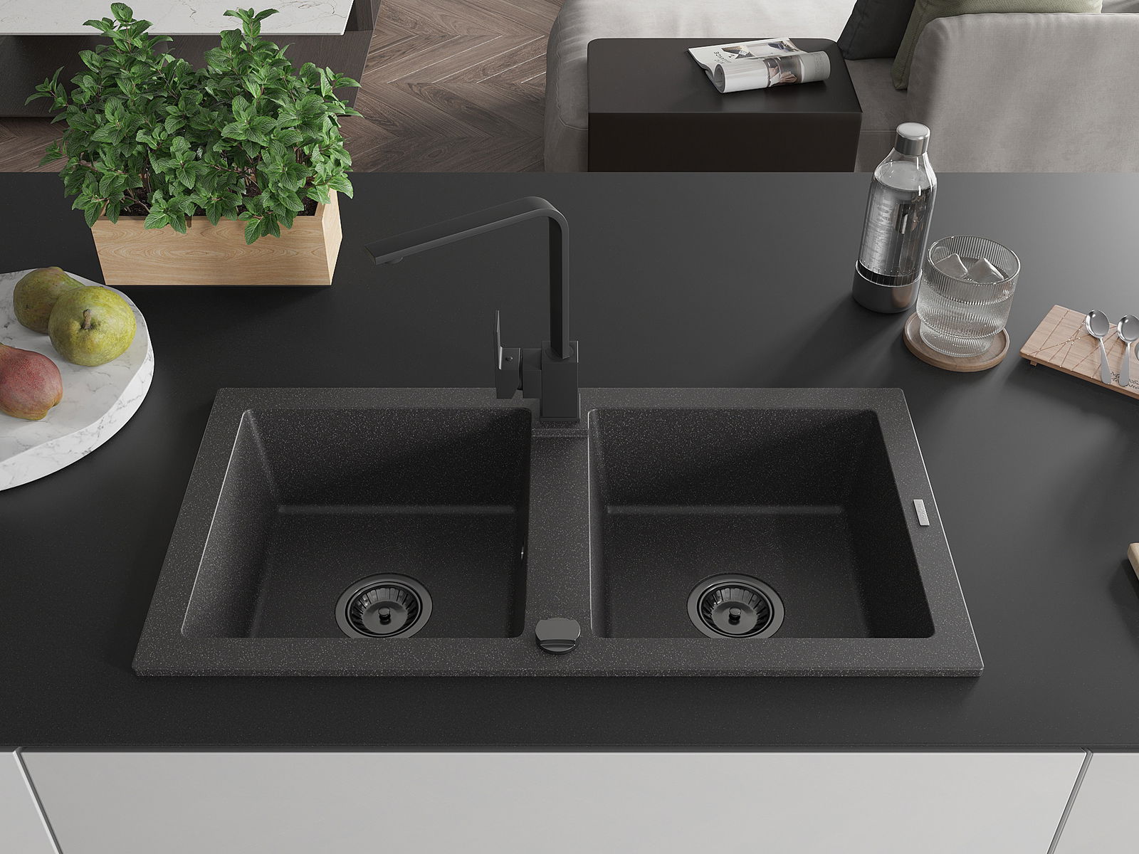 El fregadero está hecho de granito de alta calidad. Constituye un complemento elegante y, sobre todo, práctico para cualquier cocina, independientemente de su estilo. La alta calidad y durabilidad del granito aseguran un uso durante muchos años.