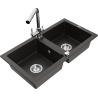 Mexen Mario fregadero de granito 2 senos con grifo de cocina Duero, negro/plata metálica - 6504-73-671600-00