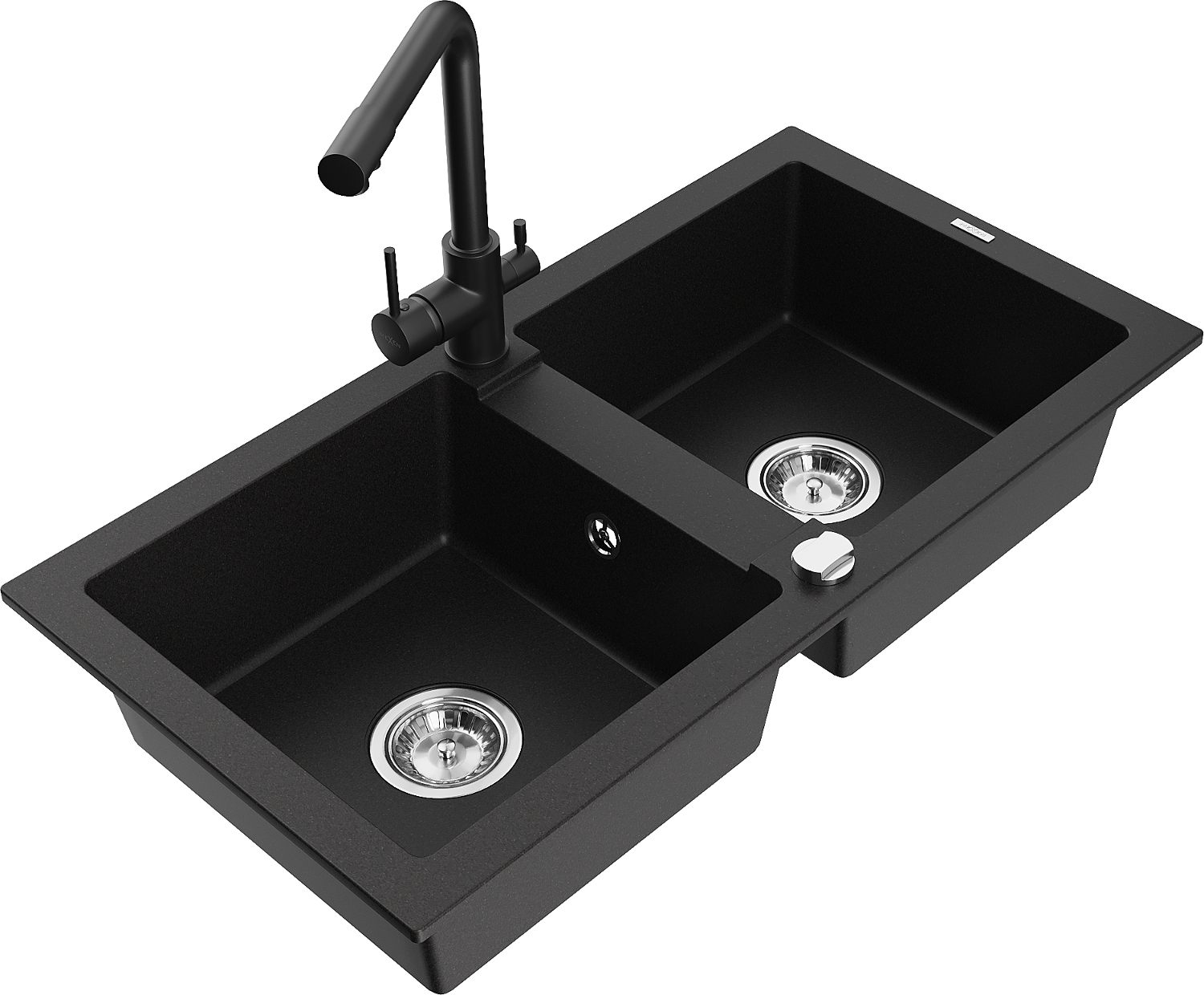 Mexen Mario fregadero de granito de 2 tazones con grifo de cocina Duero, negro - 6504-77-671600-70