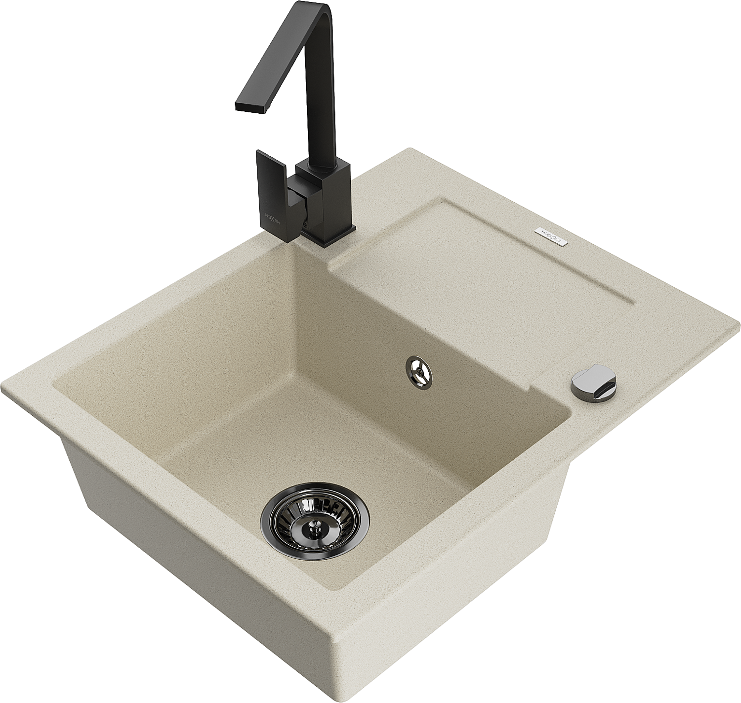 Mexen Enzo fregadero de granito de 1 seno con escurridor y grifo de cocina Rita, beige - 6506-69-670300-70
