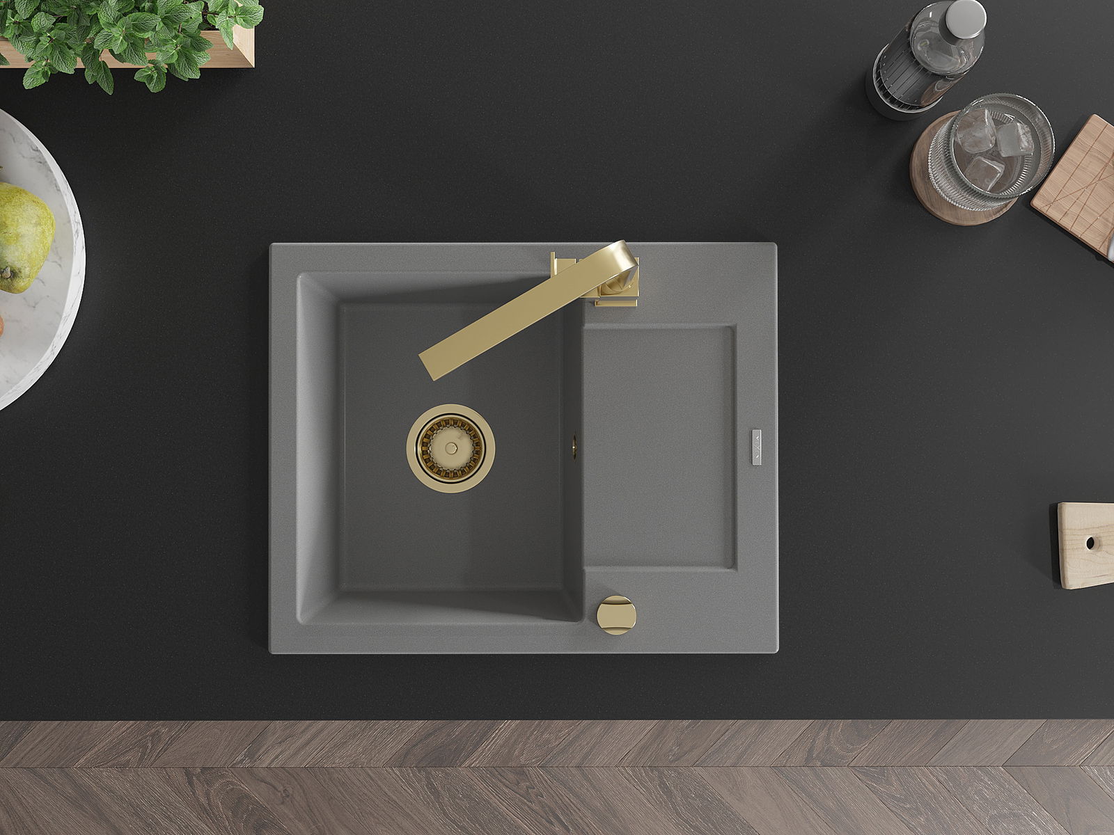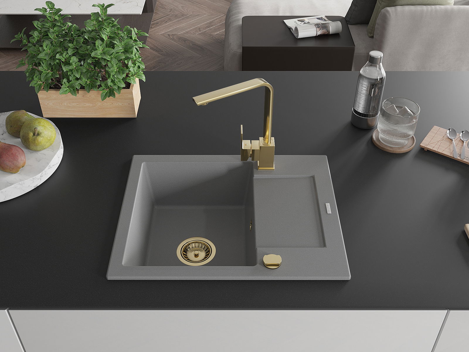 El fregadero está hecho de granito de alta calidad. Constituye un complemento elegante y, sobre todo, práctico para cualquier cocina, independientemente de su estilo. La alta calidad y durabilidad del granito aseguran un uso durante muchos años.