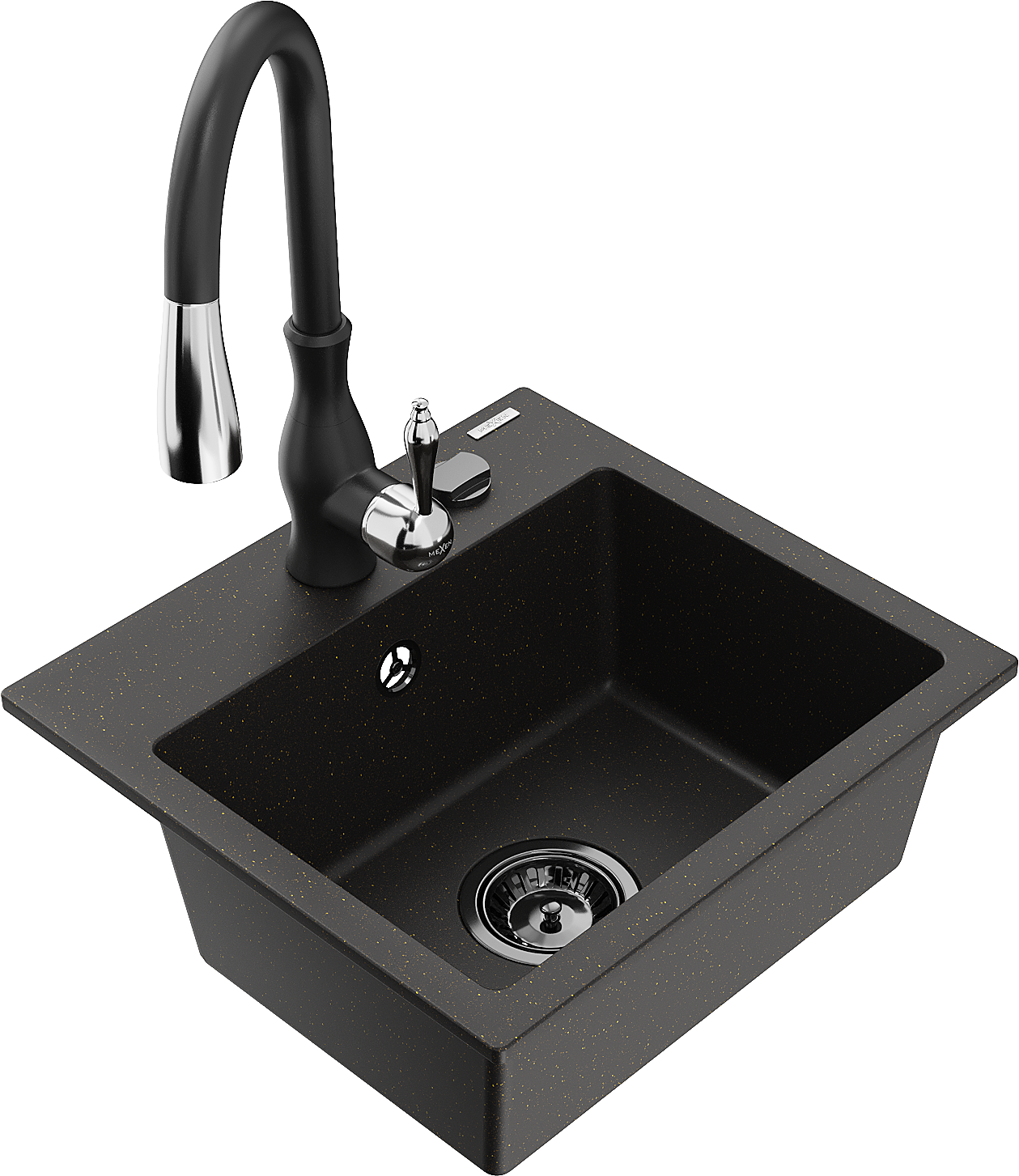 Mexen Milo fregadero de granito de 1 cubeta con grifo de cocina Savita, negro/dorado metálico- 6505-75-672601-70-B
