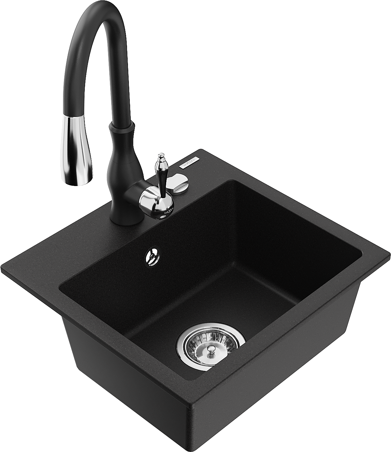 Mexen Milo fregadero de granito de 1 seno con grifo de cocina Savita, negro - 6505-77-672601-70