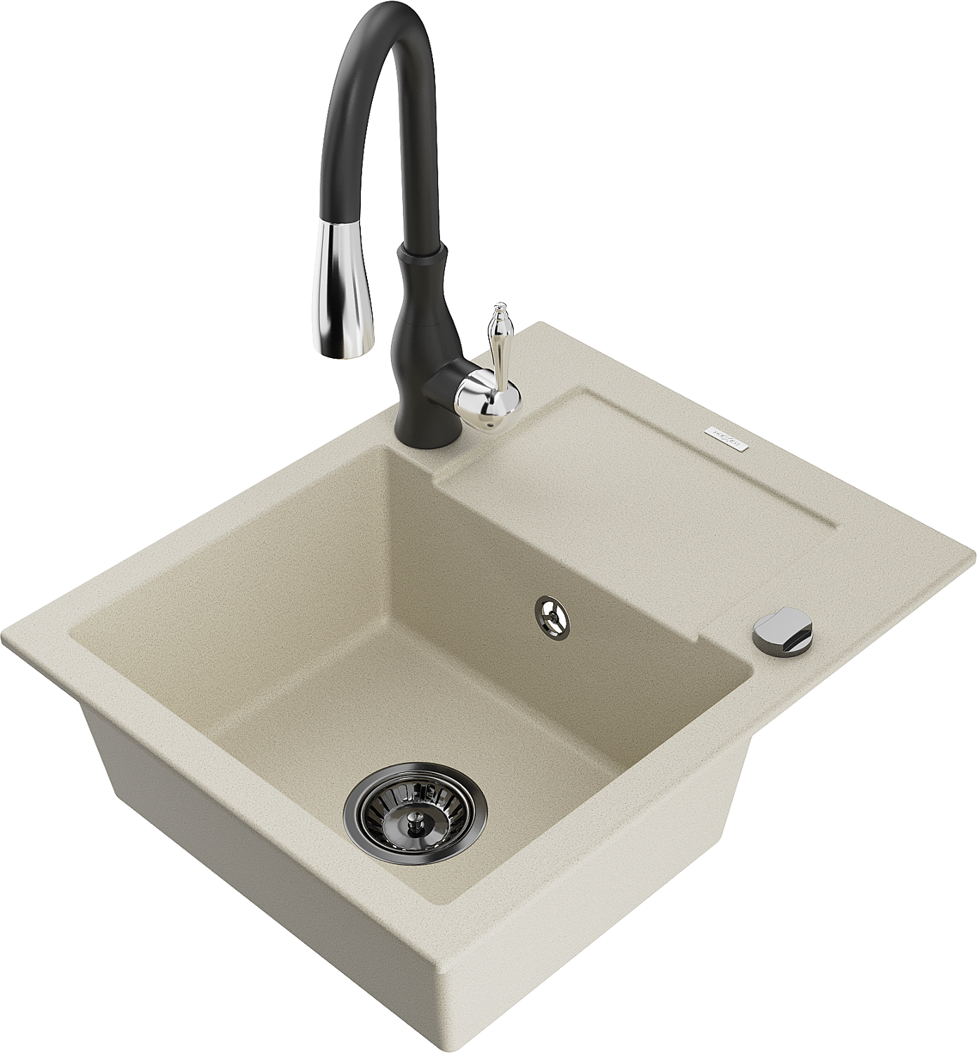 Mexen Enzo fregadero de granito de 1 compartimento con escurridor y grifo de cocina Savita, beige - 6506-69-672601-70