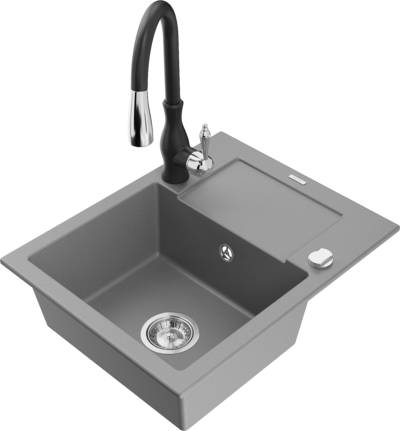 Mexen Enzo fregadero de granito de 1 cubeta con escurridor y grifo de cocina Savita, gris - 6506-71-672601-70