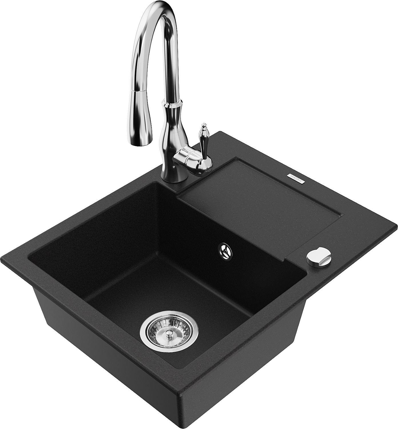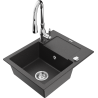 Mexen Enzo fregadero de granito de 1 cubeta con escurridor y grifo de cocina Savita, negro - 6506-77-672601-00