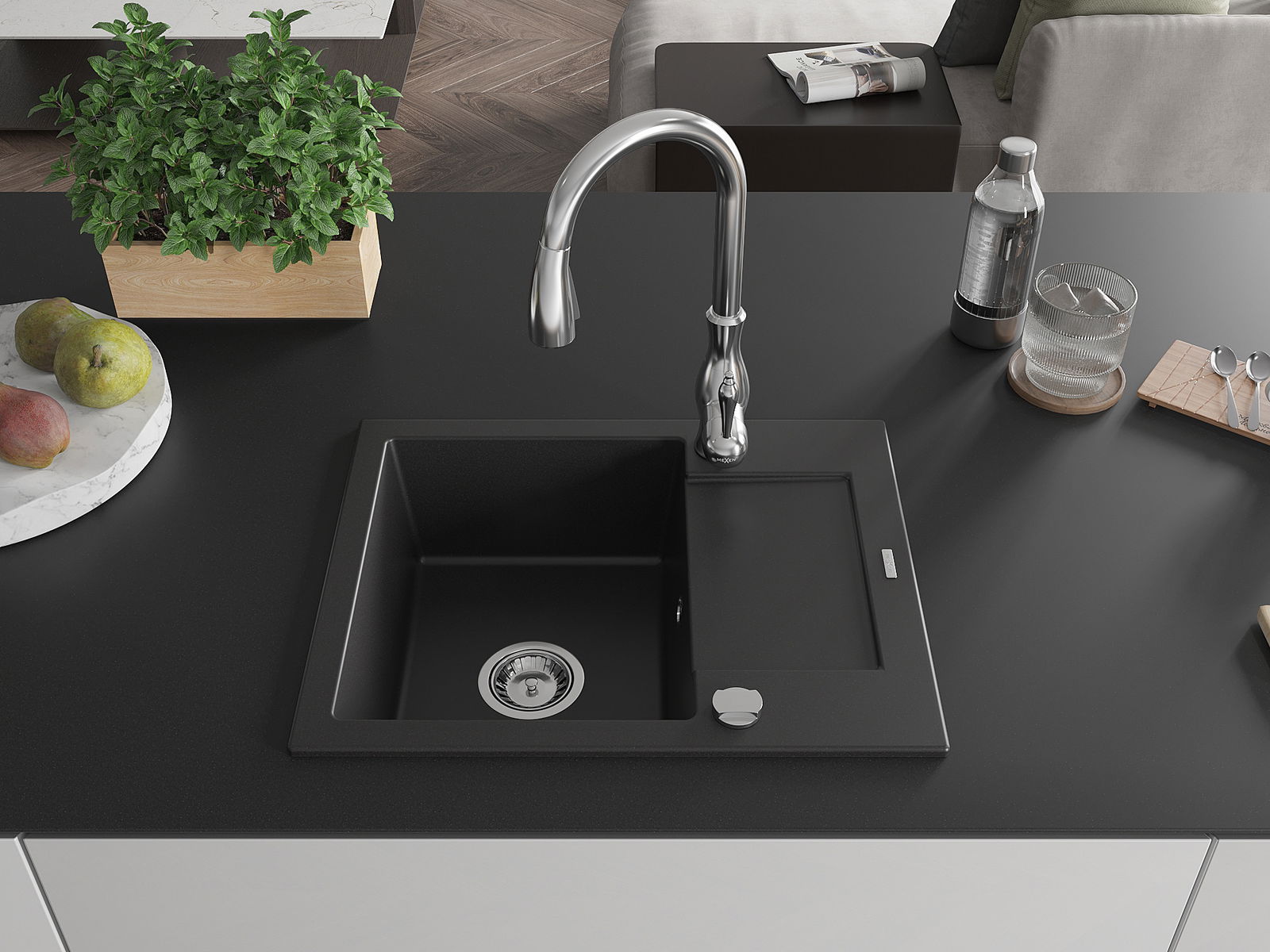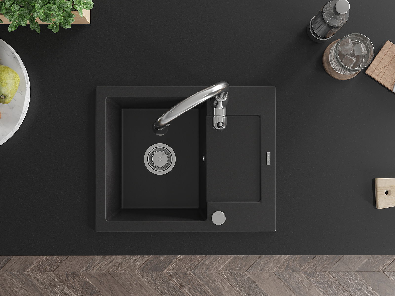 El fregadero está hecho de granito de alta calidad. Constituye un complemento elegante y, sobre todo, práctico para cualquier cocina, independientemente de su estilo. La alta calidad y durabilidad del granito aseguran un uso durante muchos años.